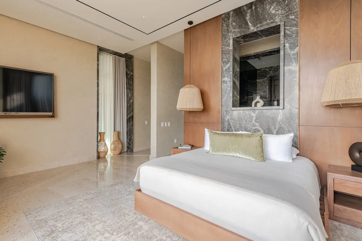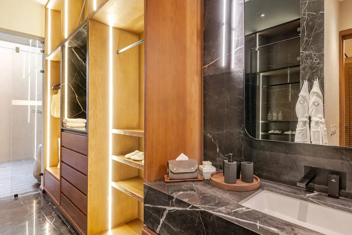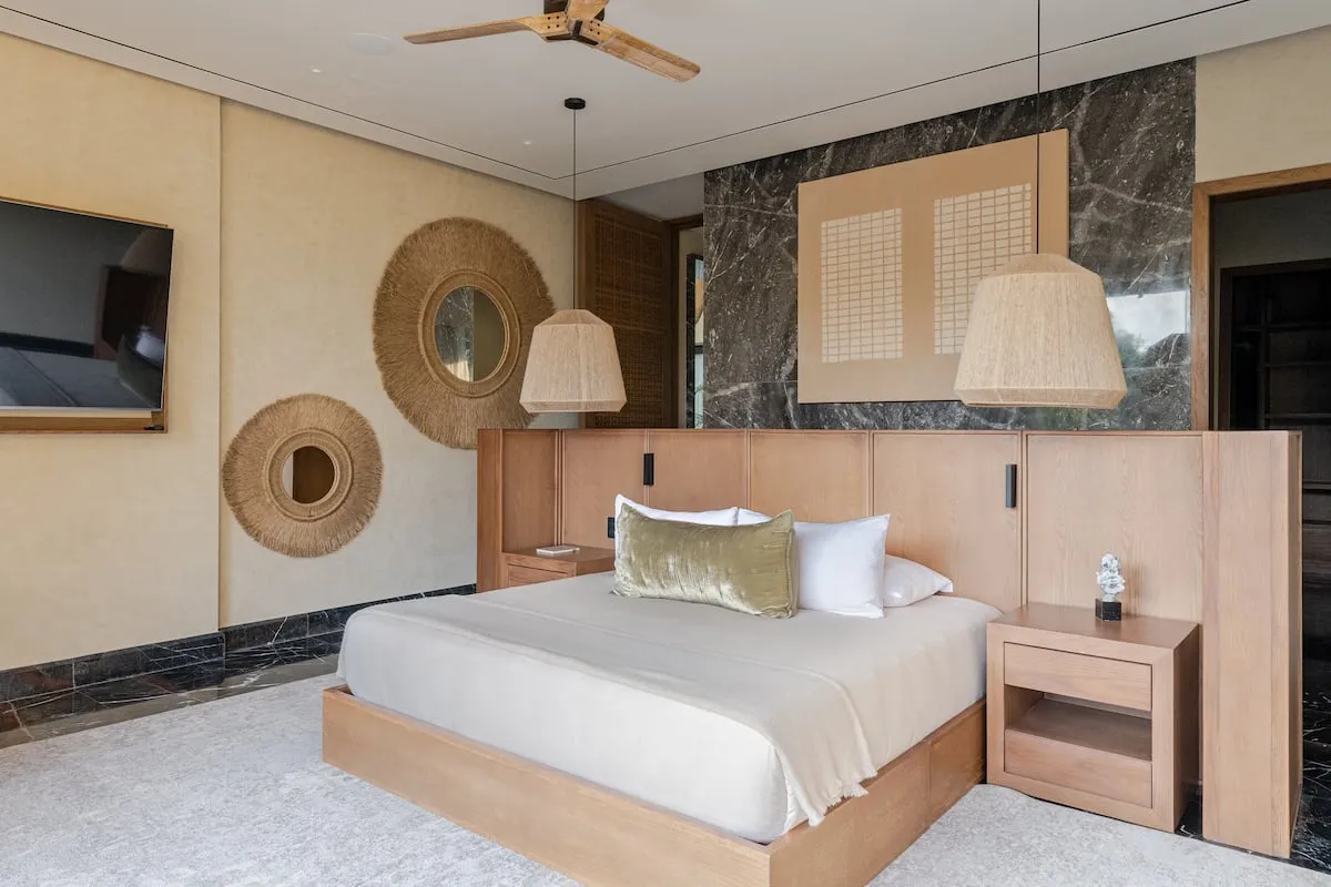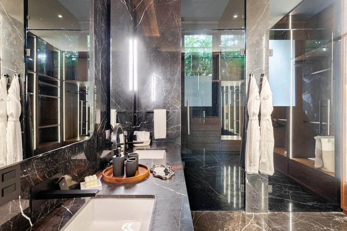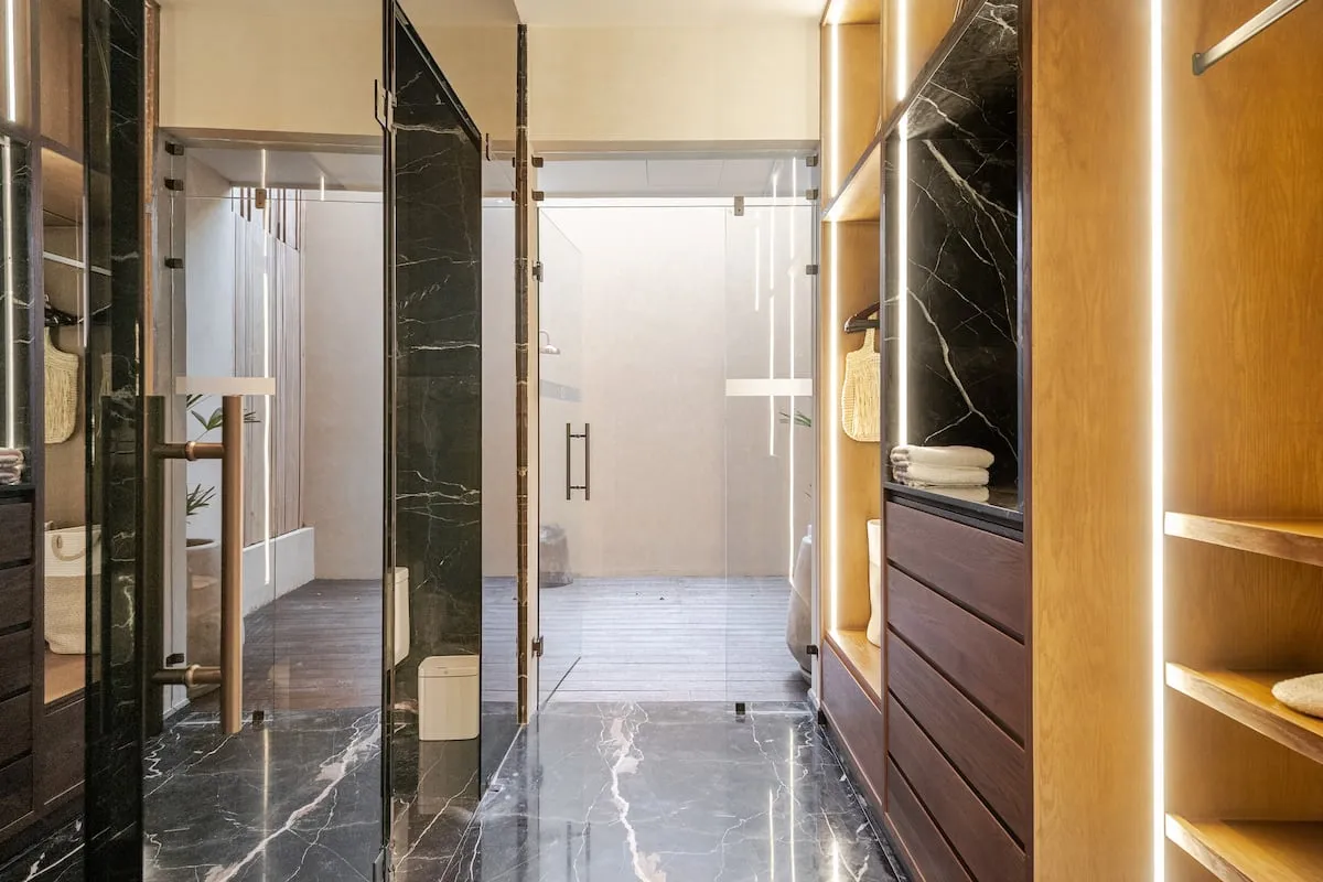 Crafted with exceptional detail, the villa features floor-to-ceiling marble, hand-finished cedar, natural stone, and a glass-bottom pool that connects levels in unexpected ways. Every element has been designed not just to impress, but to evoke—spaces that feel both grounding and expansive at once.
