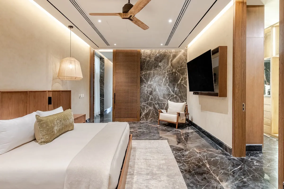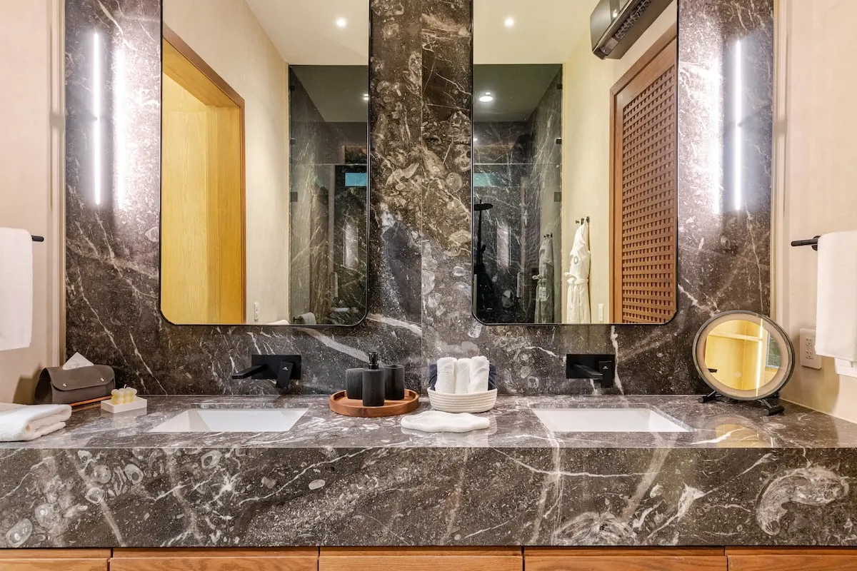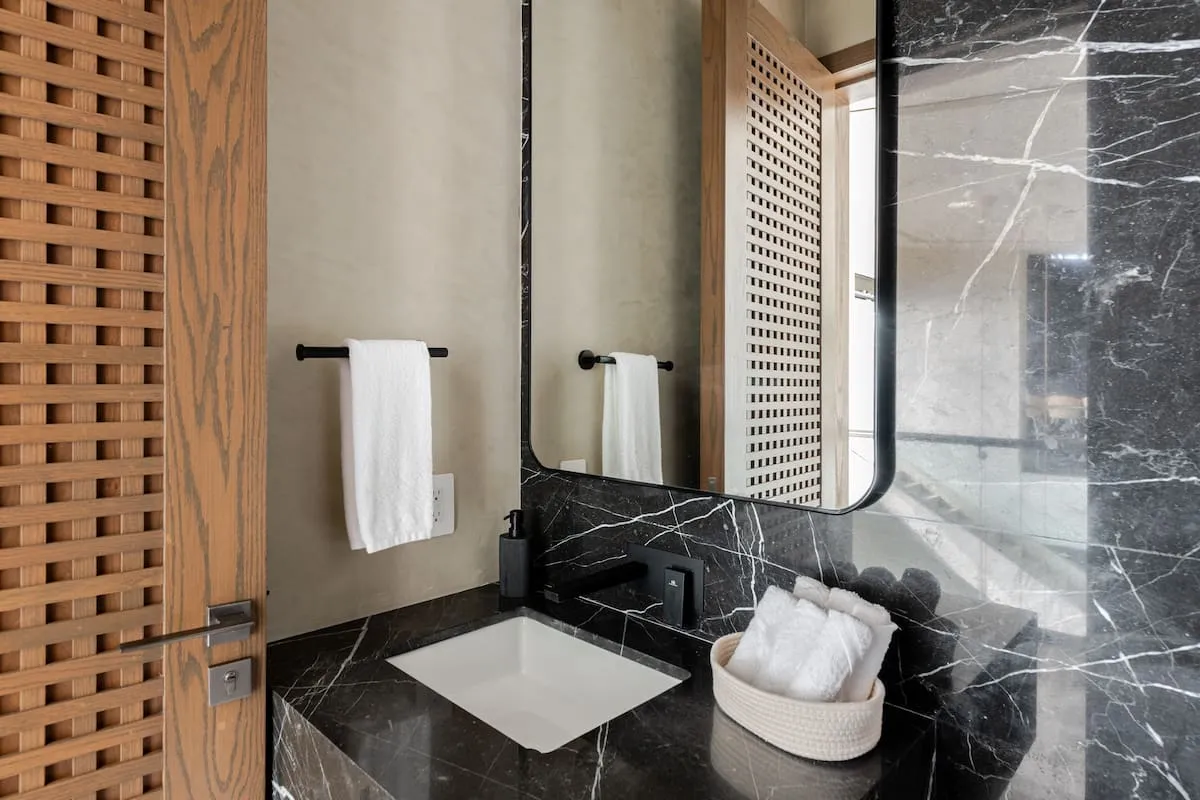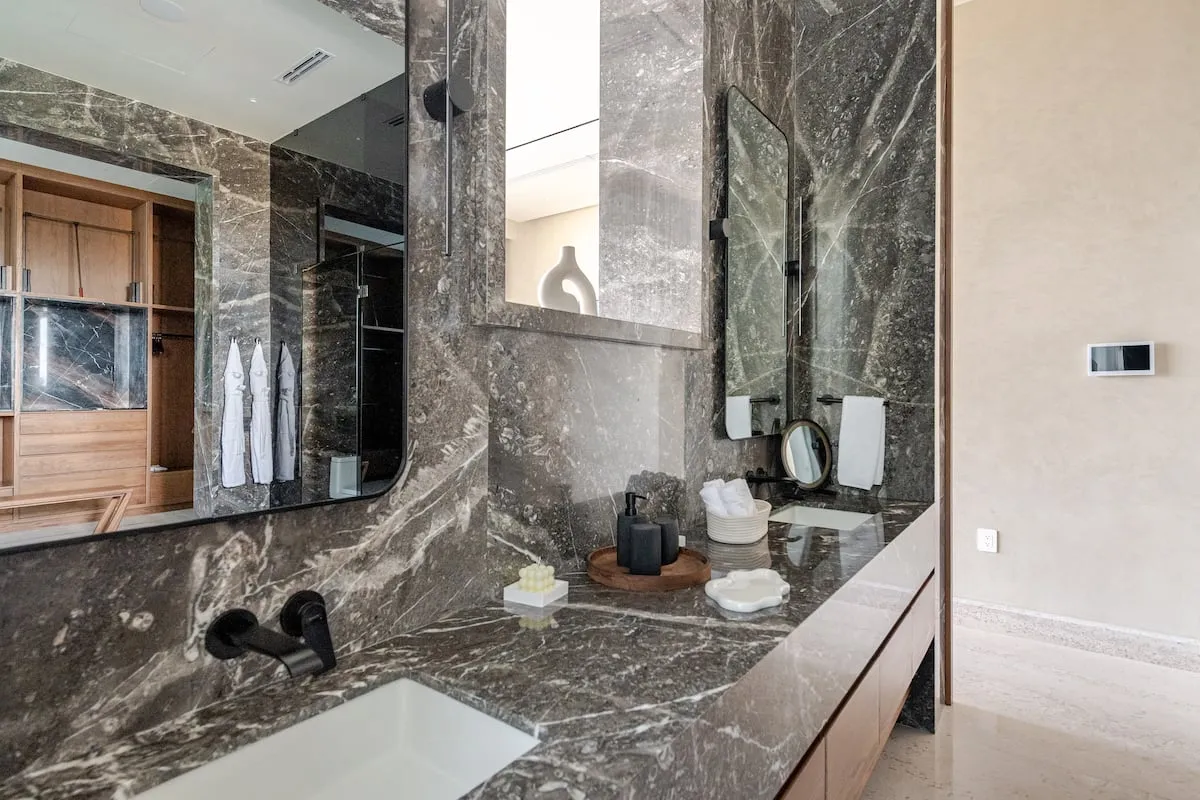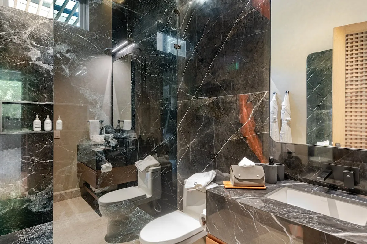 Crafted with exceptional detail, the villa features floor-to-ceiling marble, hand-finished cedar, natural stone, and a glass-bottom pool that connects levels in unexpected ways. Every element has been designed not just to impress, but to evoke—spaces that feel both grounding and expansive at once.
