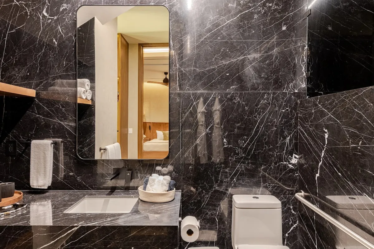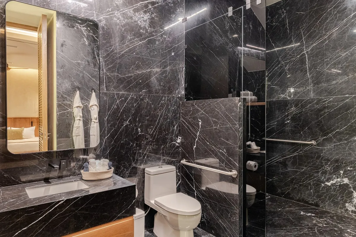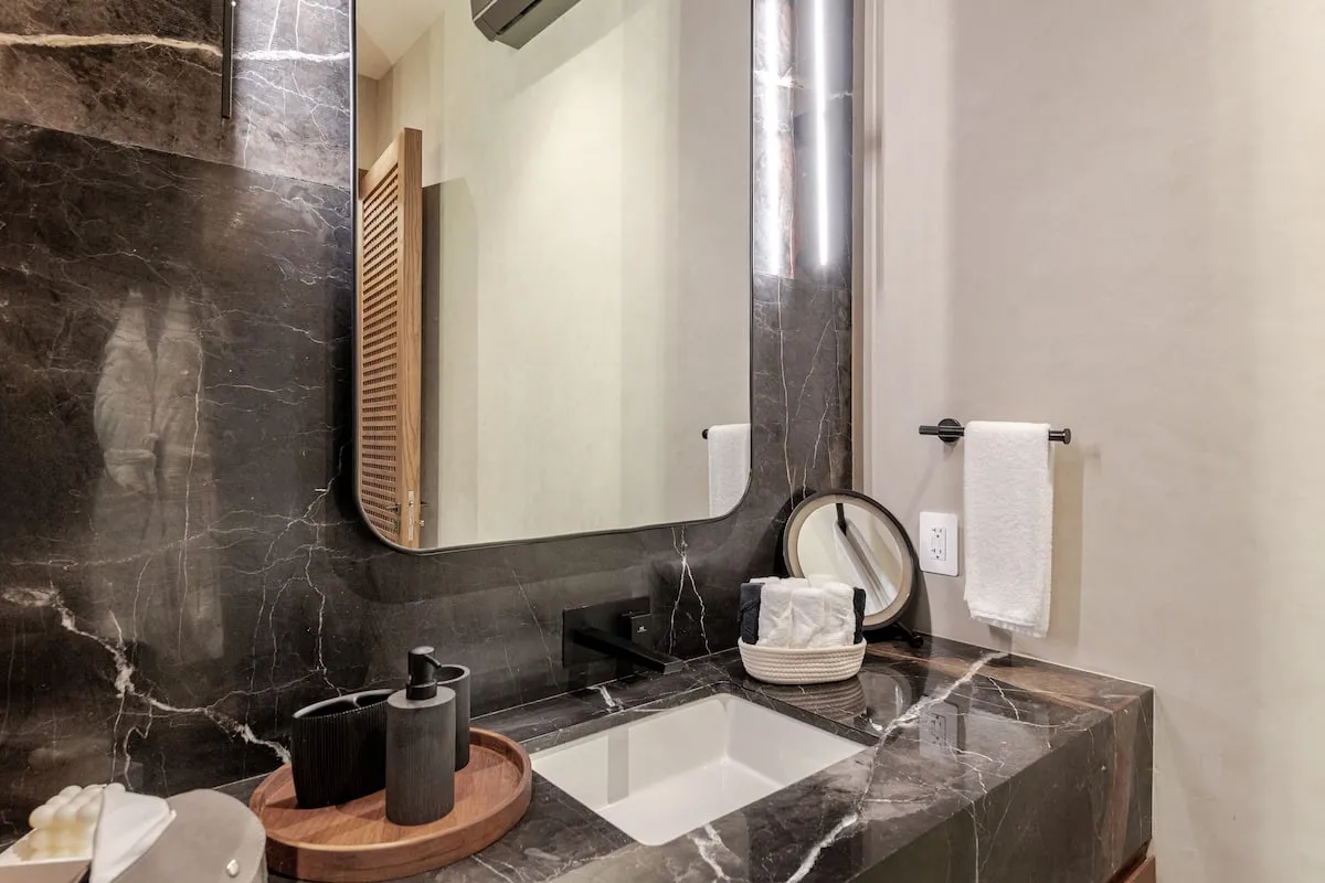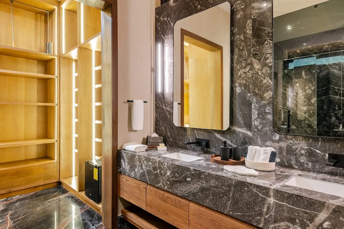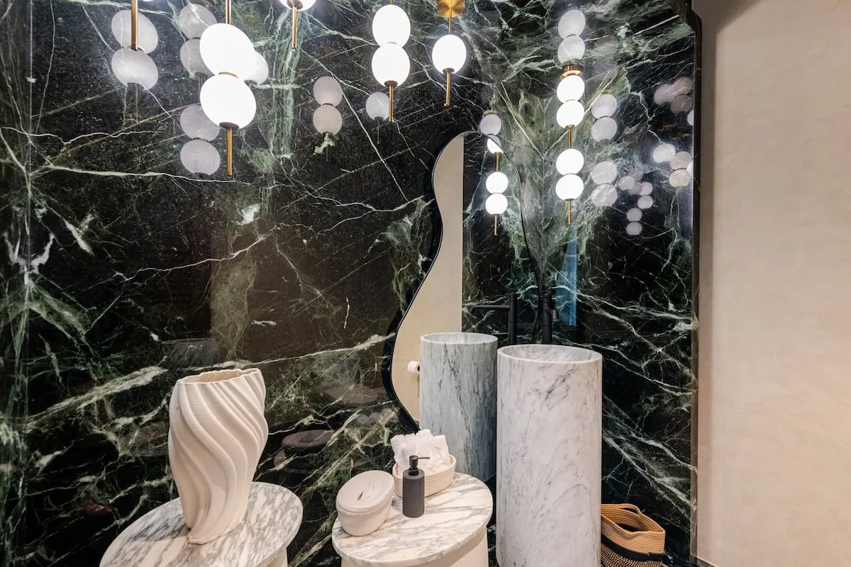 Crafted with exceptional detail, the villa features floor-to-ceiling marble, hand-finished cedar, natural stone, and a glass-bottom pool that connects levels in unexpected ways. Every element has been designed not just to impress, but to evoke—spaces that feel both grounding and expansive at once.