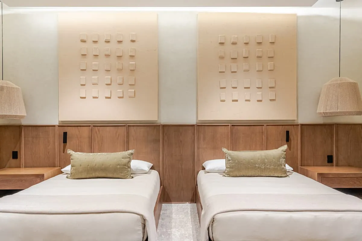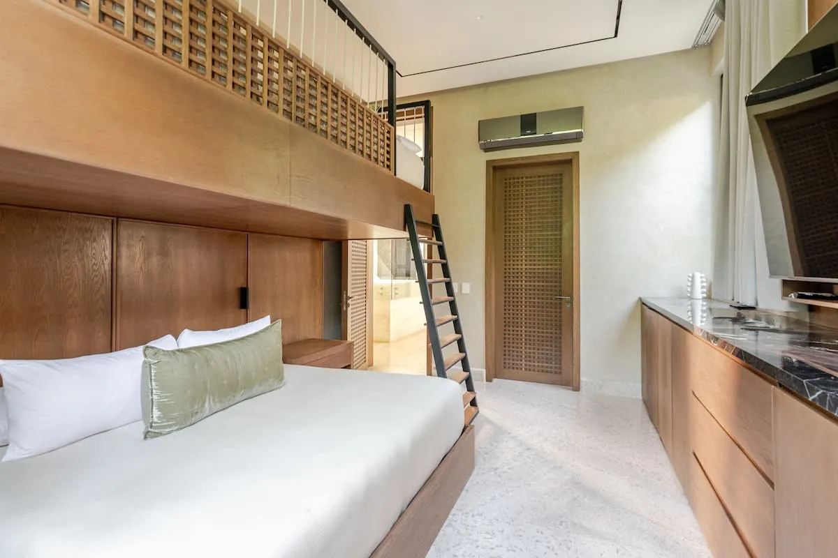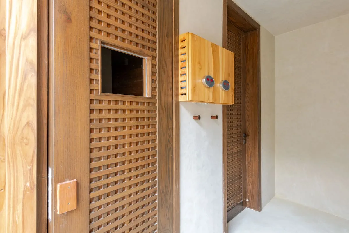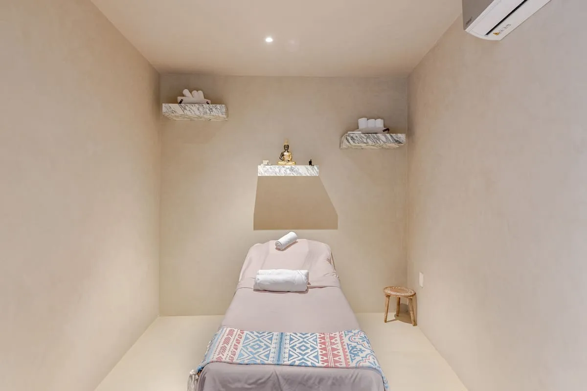 A dedicated wellness area includes a cedarwood sauna, hot and cold plunge pools, massage spaces, and a private spa—while an elevated yoga and meditation deck offers a quieter moment above it all, surrounded by sea breeze and jungle sounds.