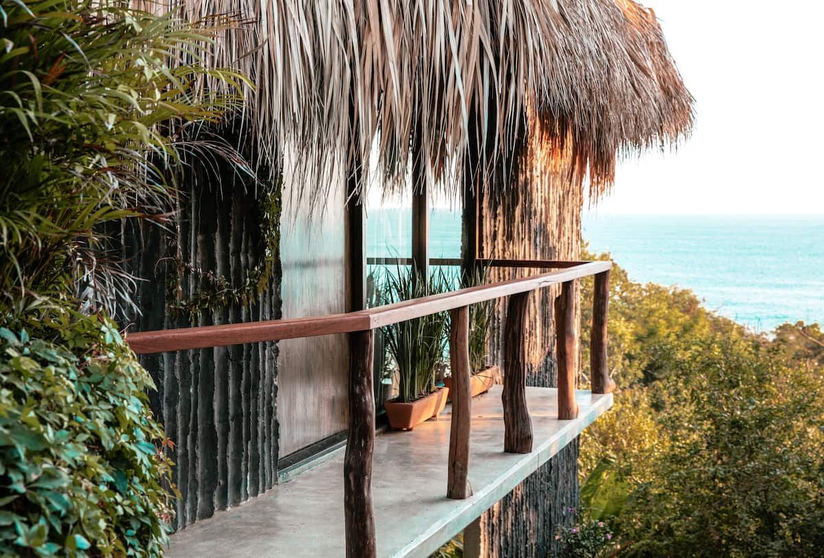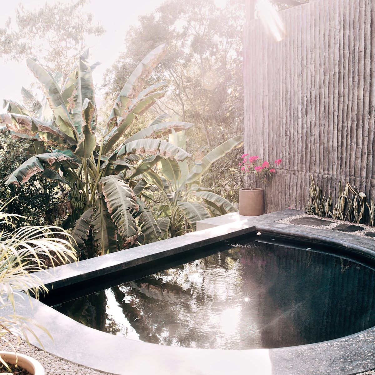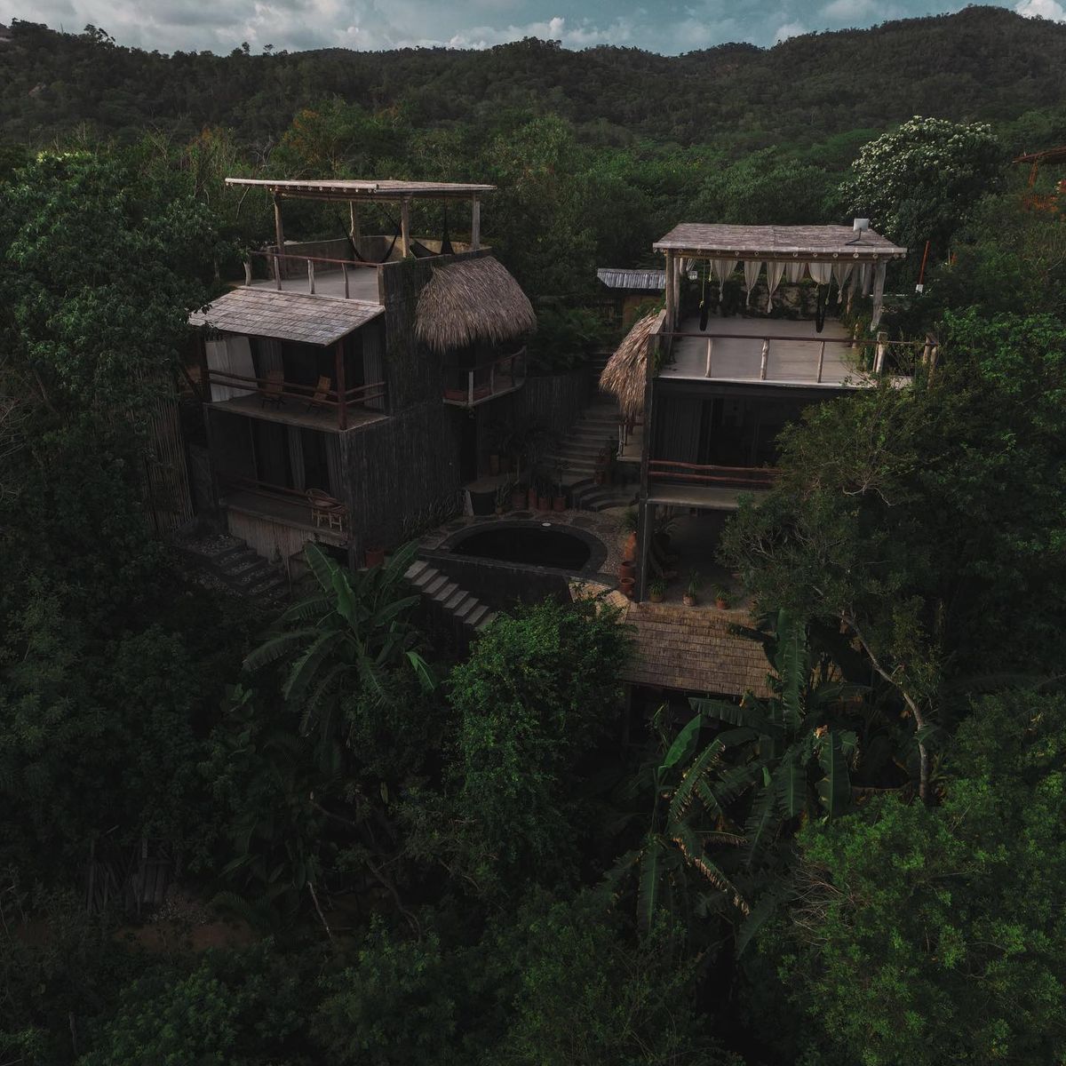 Set on a jungle hillside with wide Pacific views, Casa Uke is a villa-style retreat with two dueling structures that share a kitchen, lounge, and dining area that opens to a saltwater pool. Enclosed by a bamboo fence, the property ensures privacy.