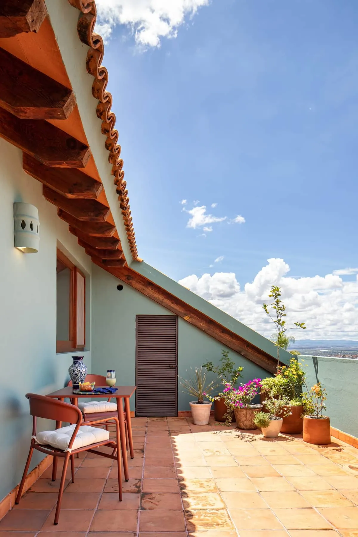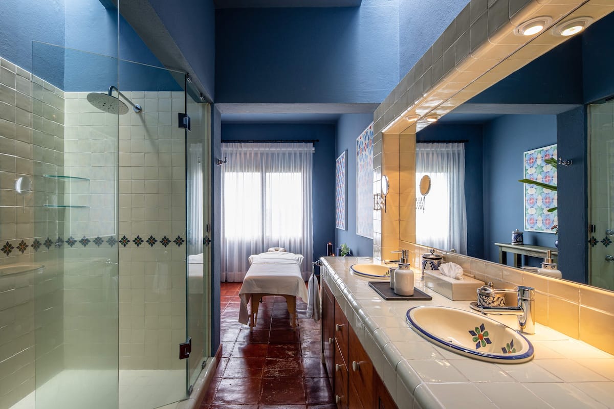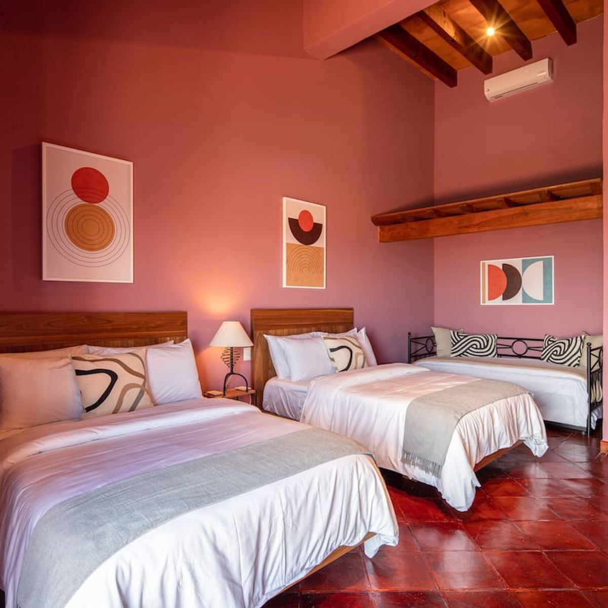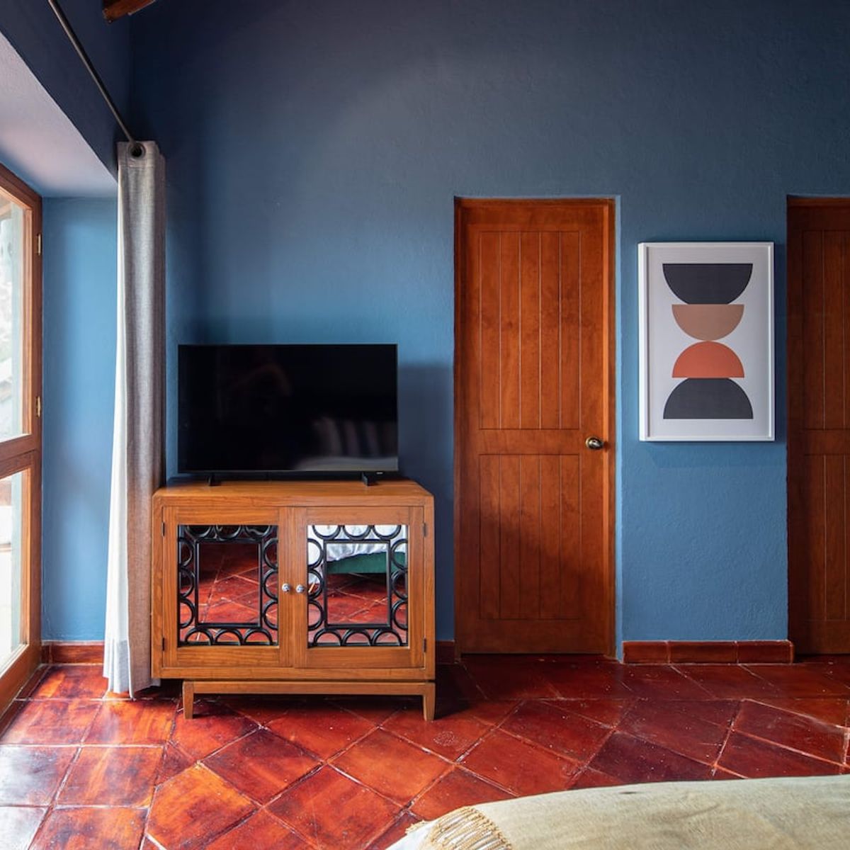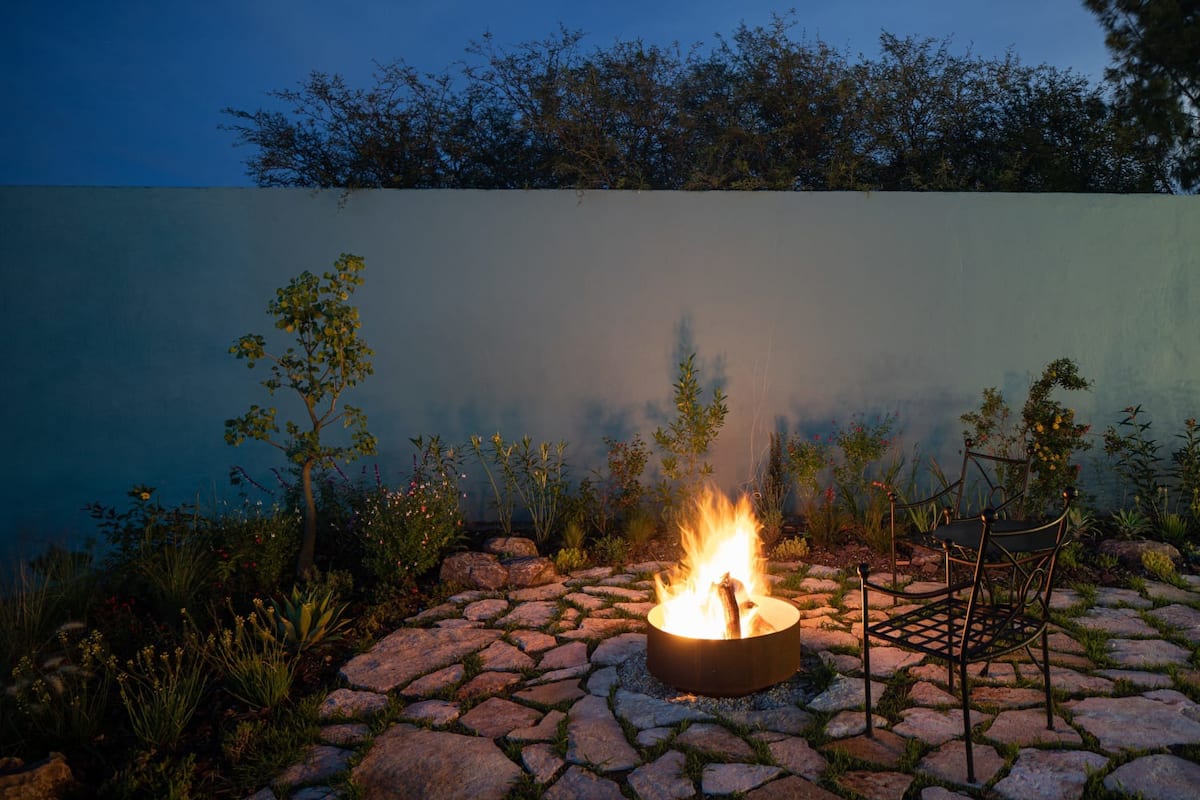 This elegant villa in Los Balcones in San Miguel de Allende offers a perfect blend of luxury and comfort, accommodating up to 17 guests. It features five stylish bedrooms, four with ensuite bathrooms, private balconies, and smart TVs. The open living spaces include a full kitchen, wood fireplace, and dedicated workspaces, while the landscaped multi-level backyard boasts a central stone courtyard, outdoor dining, a fire pit, and breathtaking mountain views.