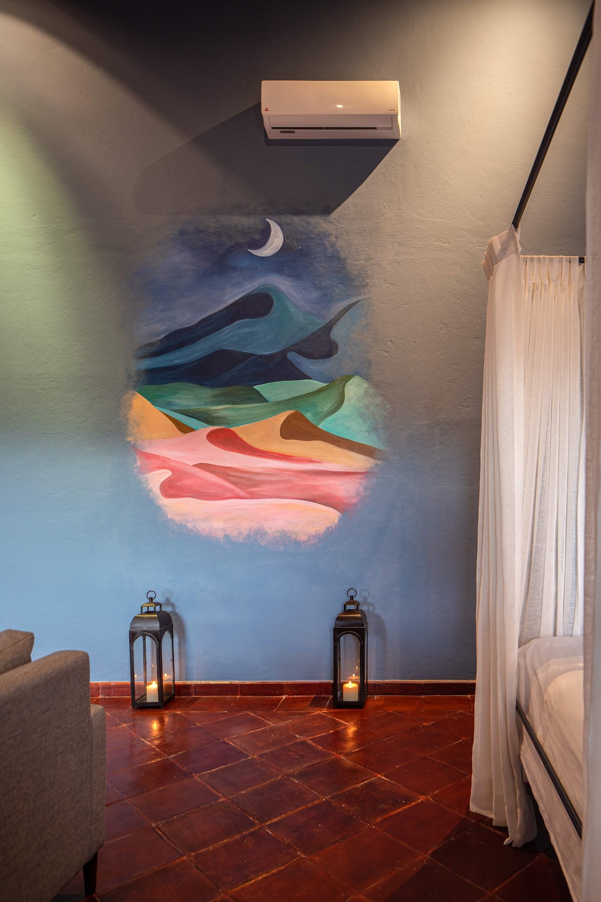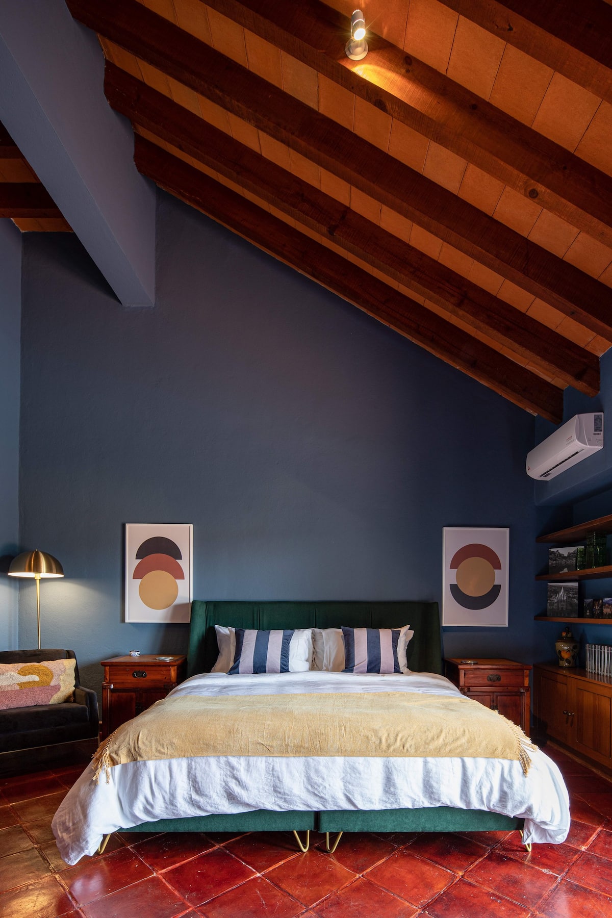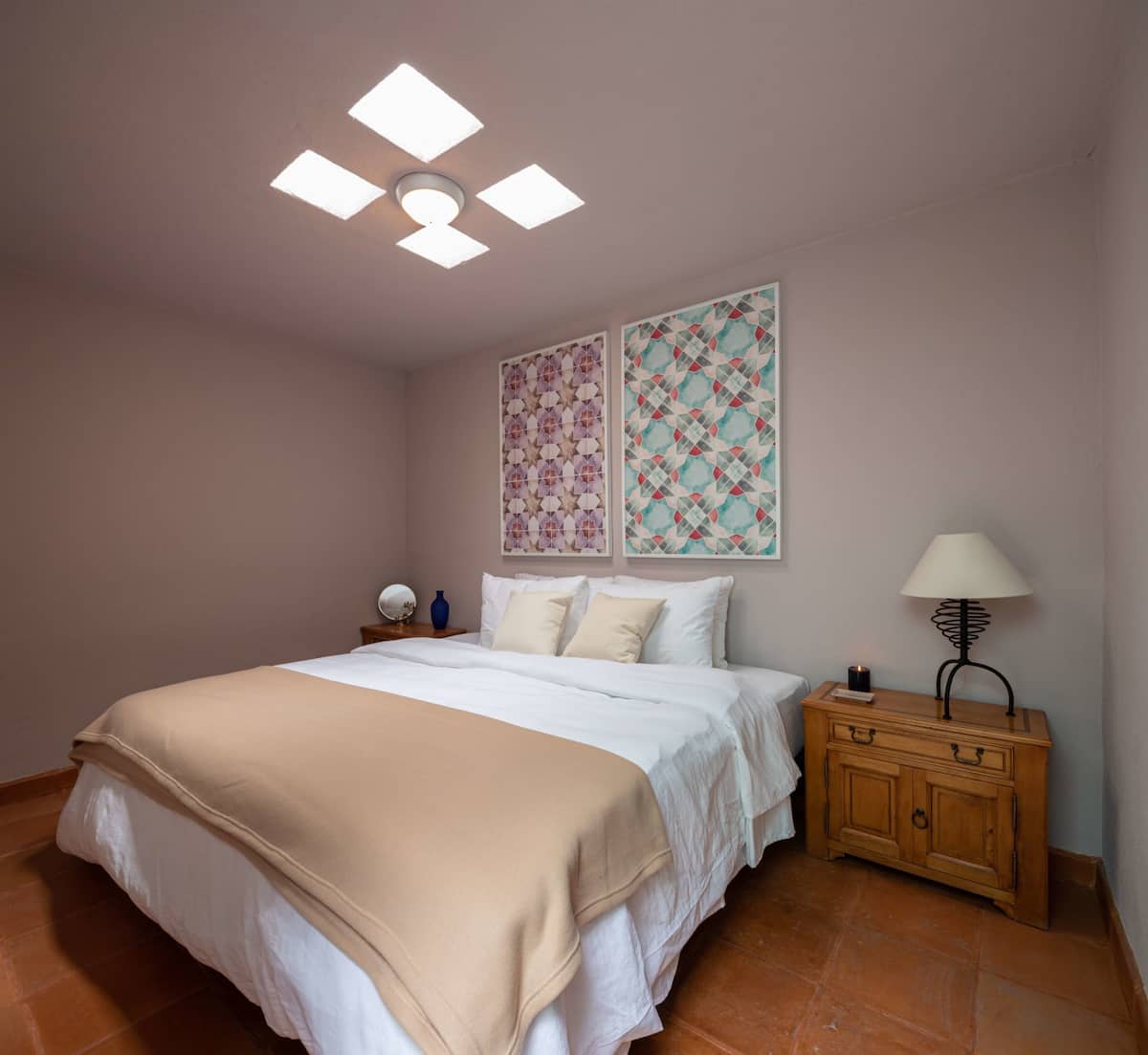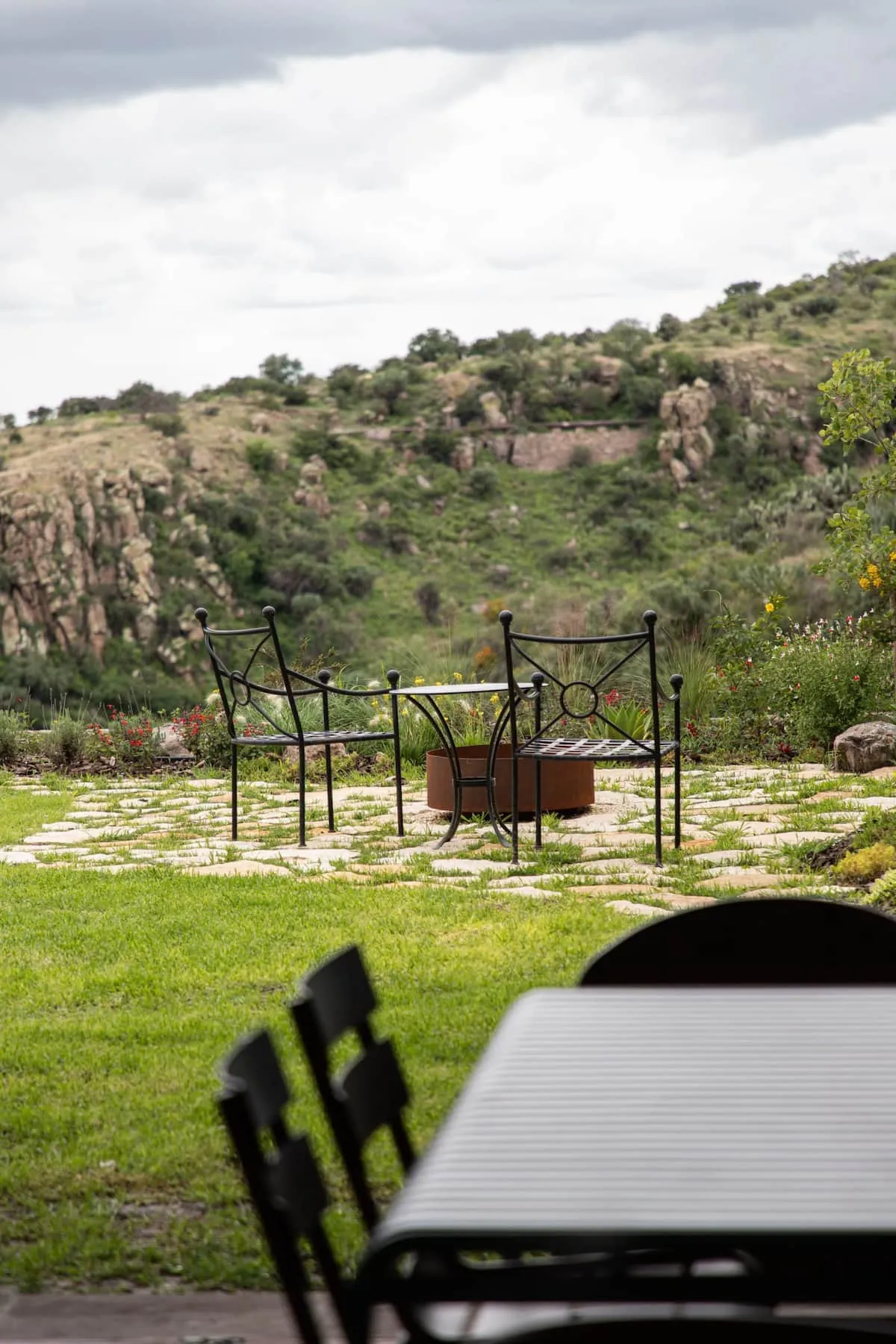 This elegant villa in Los Balcones in San Miguel de Allende offers a perfect blend of luxury and comfort, accommodating up to 17 guests. It features five stylish bedrooms, four with ensuite bathrooms, private balconies, and smart TVs. The open living spaces include a full kitchen, wood fireplace, and dedicated workspaces, while the landscaped multi-level backyard boasts a central stone courtyard, outdoor dining, a fire pit, and breathtaking mountain views.