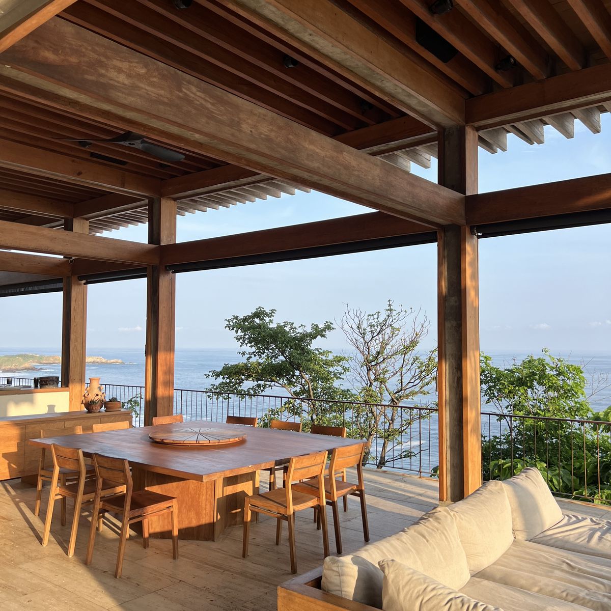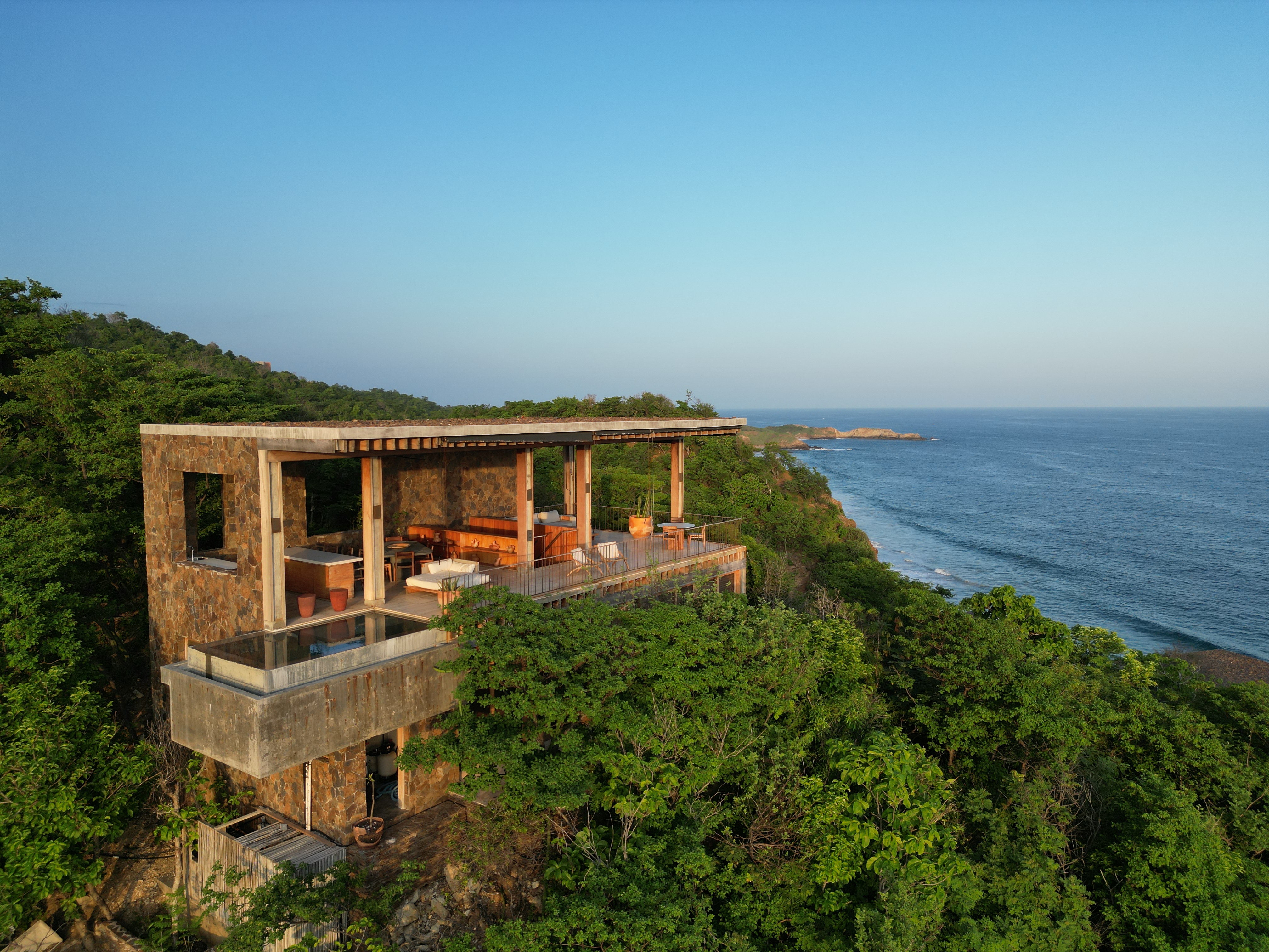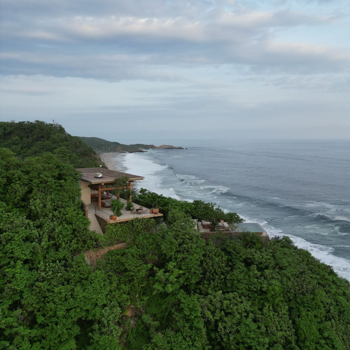 Located on a cliff overlooking Oaxaca's Pacific Ocean coast, this stunning villa offers a luxurious escape approximately 40 miles from both Hualtuco and Puerto Escondido. This eco-sustainable villa offers 11,840 square feet of multi-level living space on a 15-acre property.