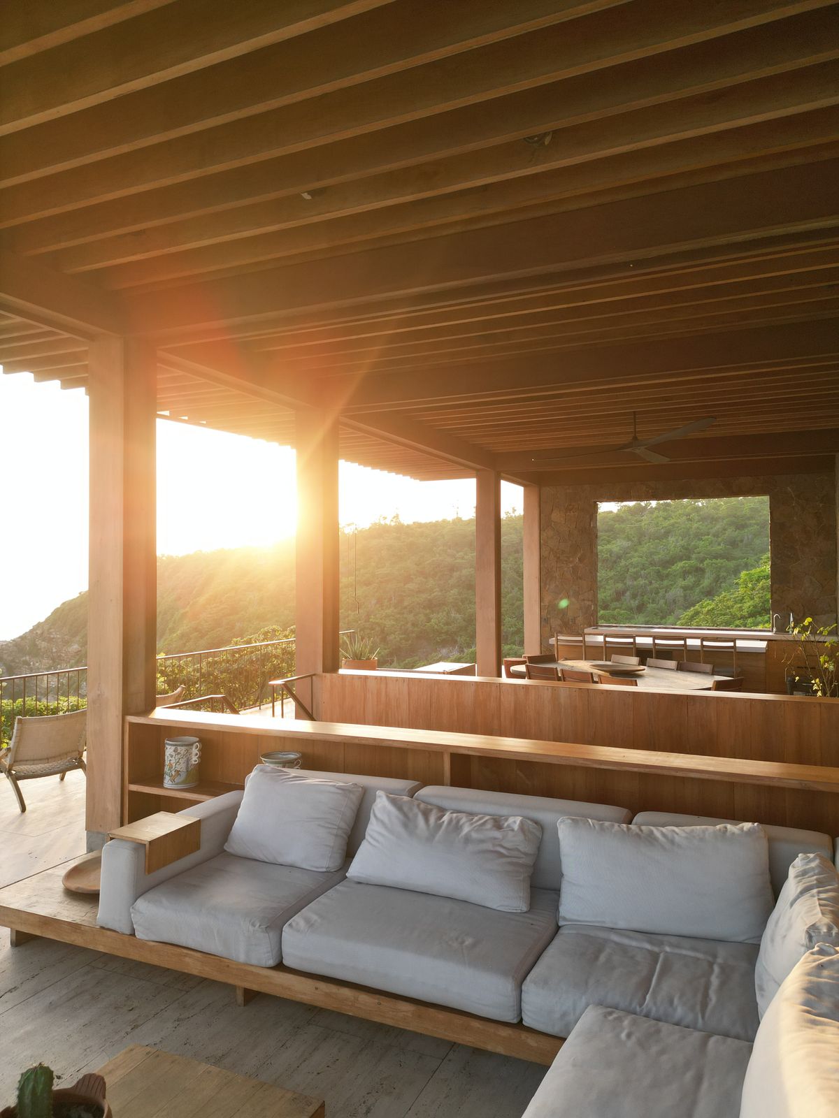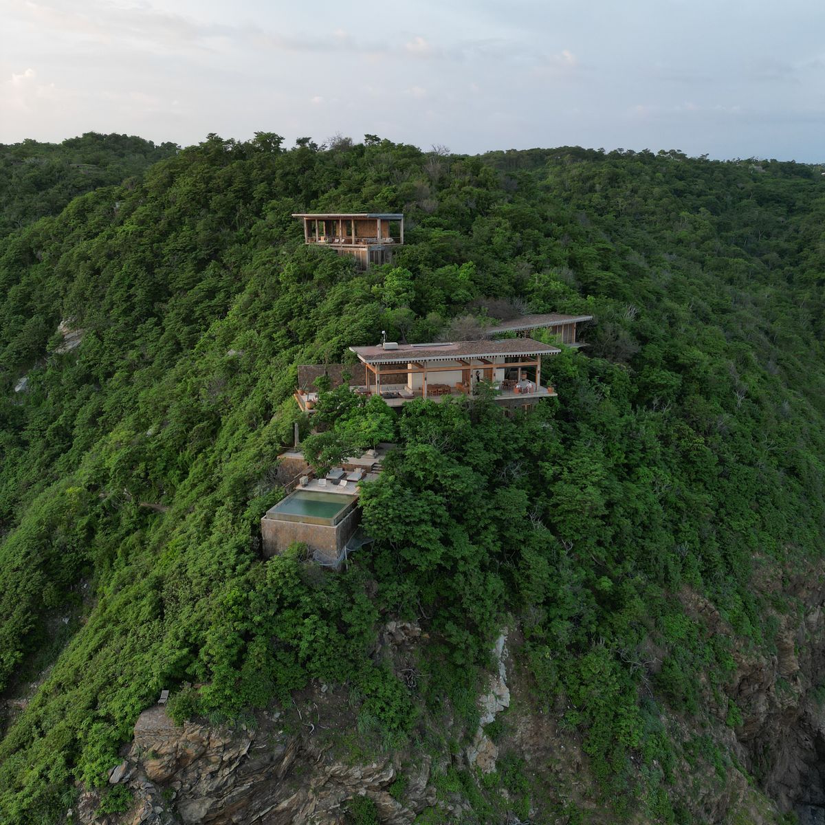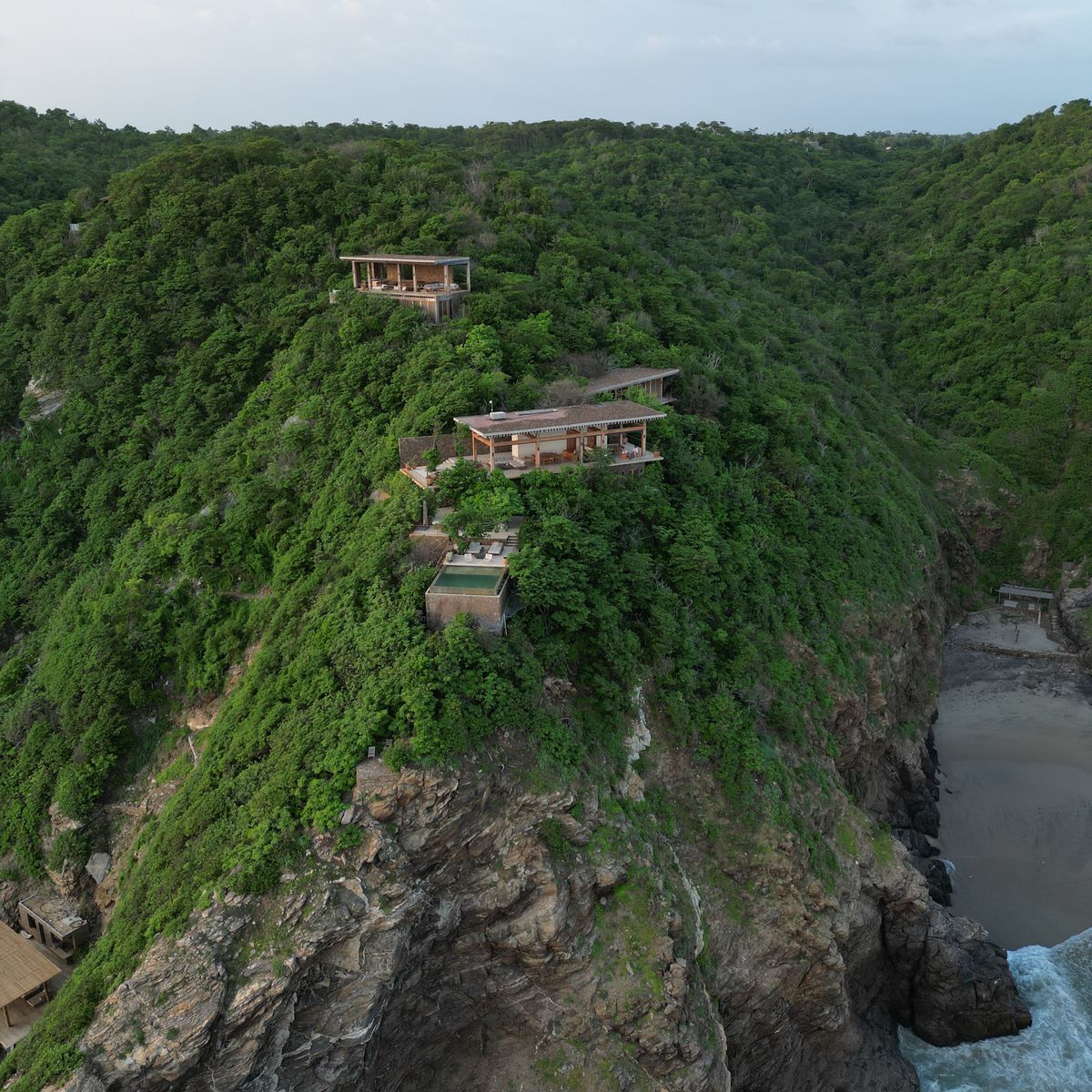 Located on a cliff overlooking Oaxaca's Pacific Ocean coast, this stunning villa offers a luxurious escape approximately 40 miles from both Hualtuco and Puerto Escondido. This eco-sustainable villa offers 11,840 square feet of multi-level living space on a 15-acre property.