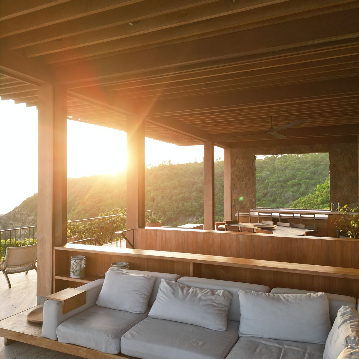 The villa boasts upper-floor decks with lounge areas, a luxurious ocean view infinity pool, and private beach access. Designed with sustainably-sourced materials and high-end wood, the villa blends seamlessly with its natural surroundings. The open living spaces provide stunning views and sea breezes.