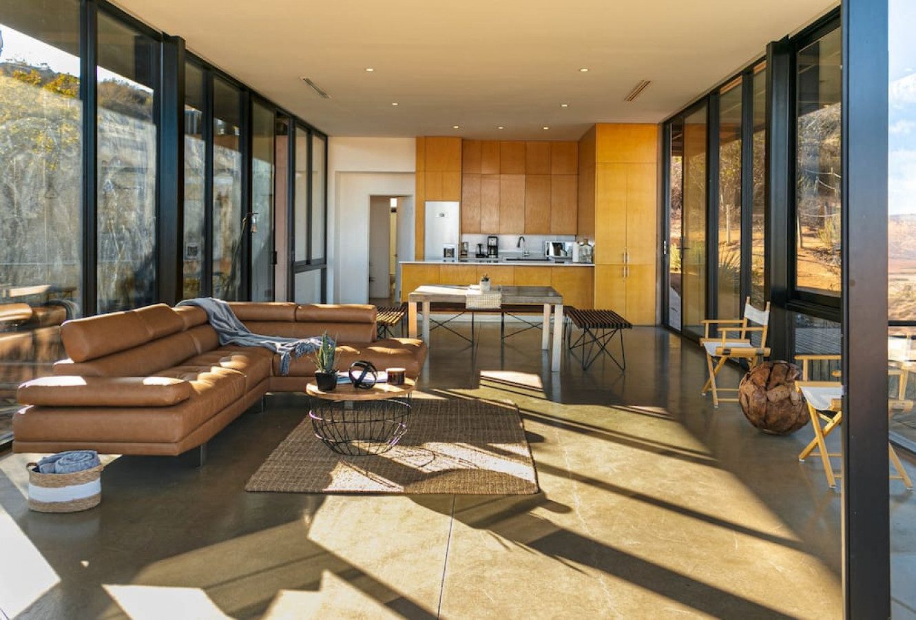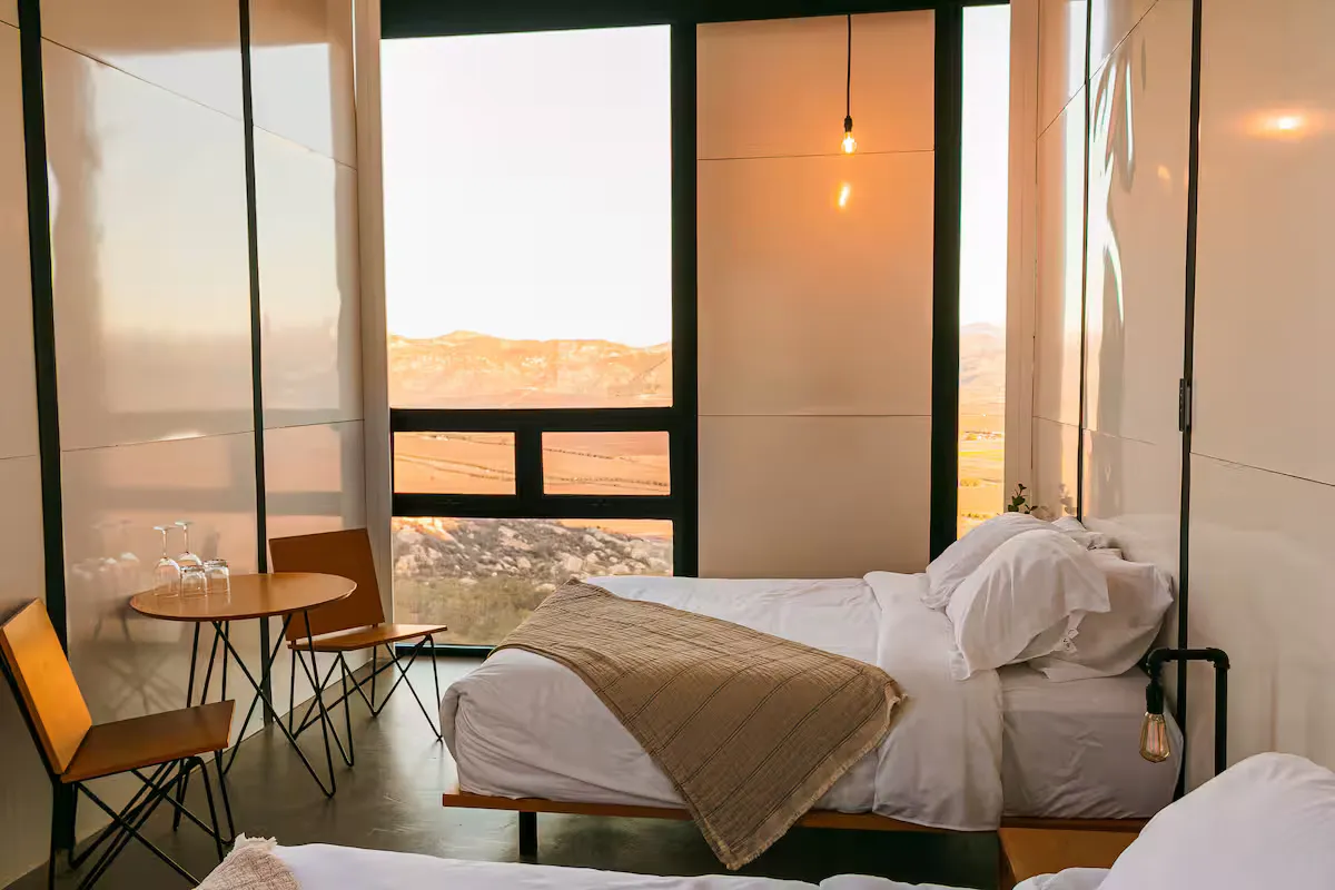 The crown jewel is the Eco House, a wall-to-wall two-bedroom glass house with epic views of the countryside below.