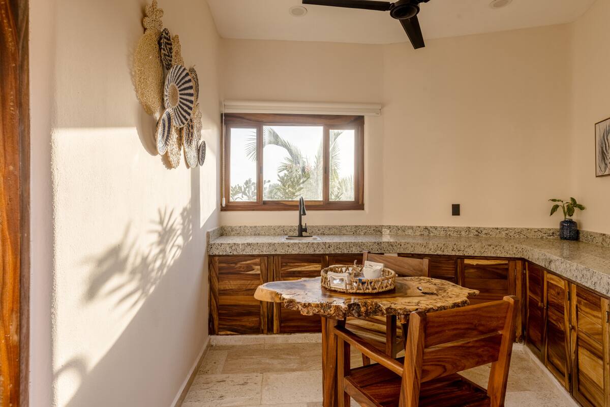This beachfront villa combines comfort and space with direct access to the ocean. The main house accommodates up to 8 guests and is complemented by 6 private Casitas, each sleeping between 5 and 8 people. Every villa includes two full bathrooms and a kitchenette for preparing simple meals.
