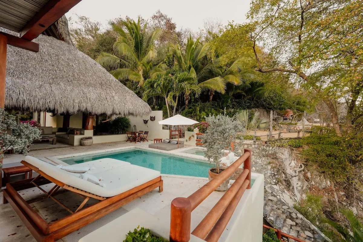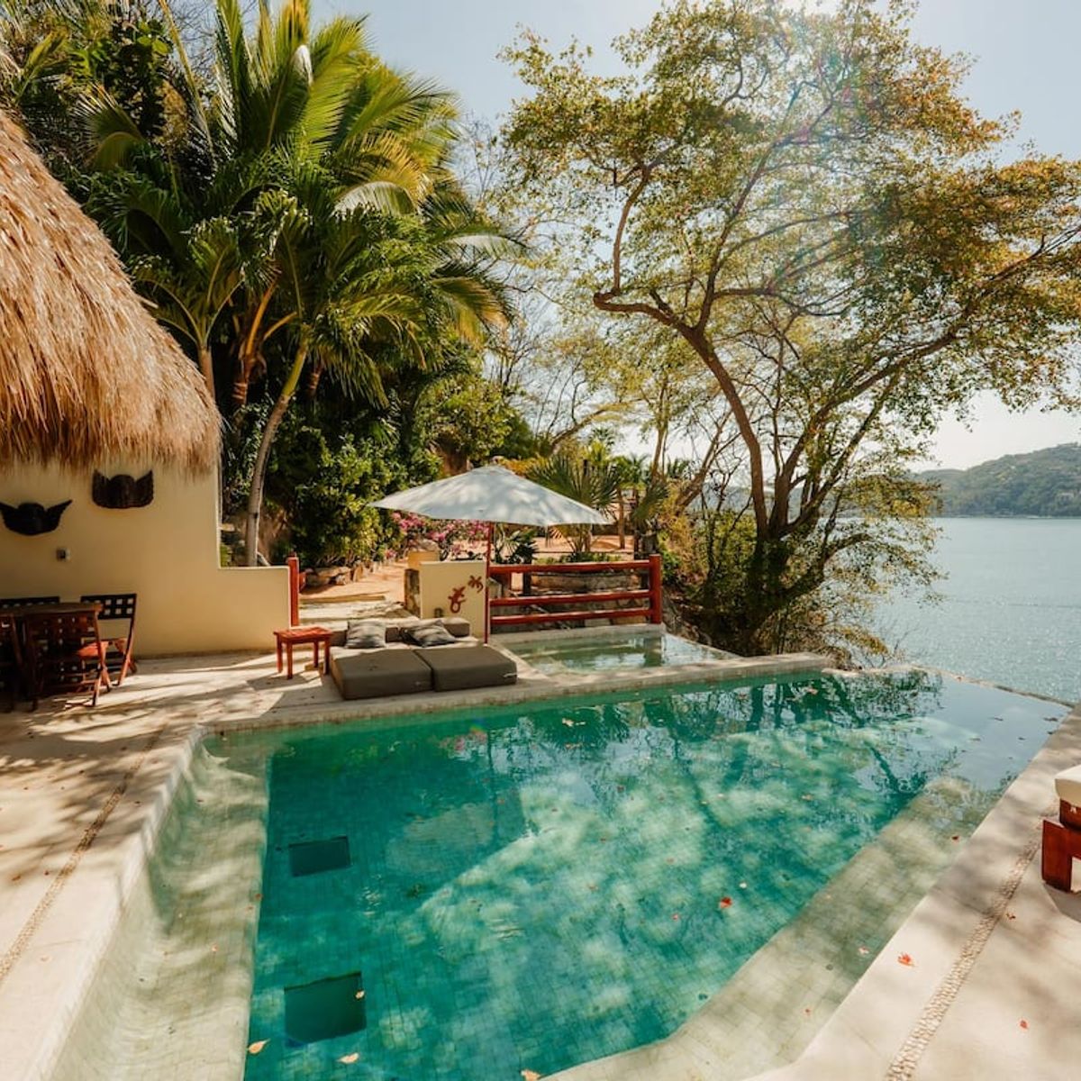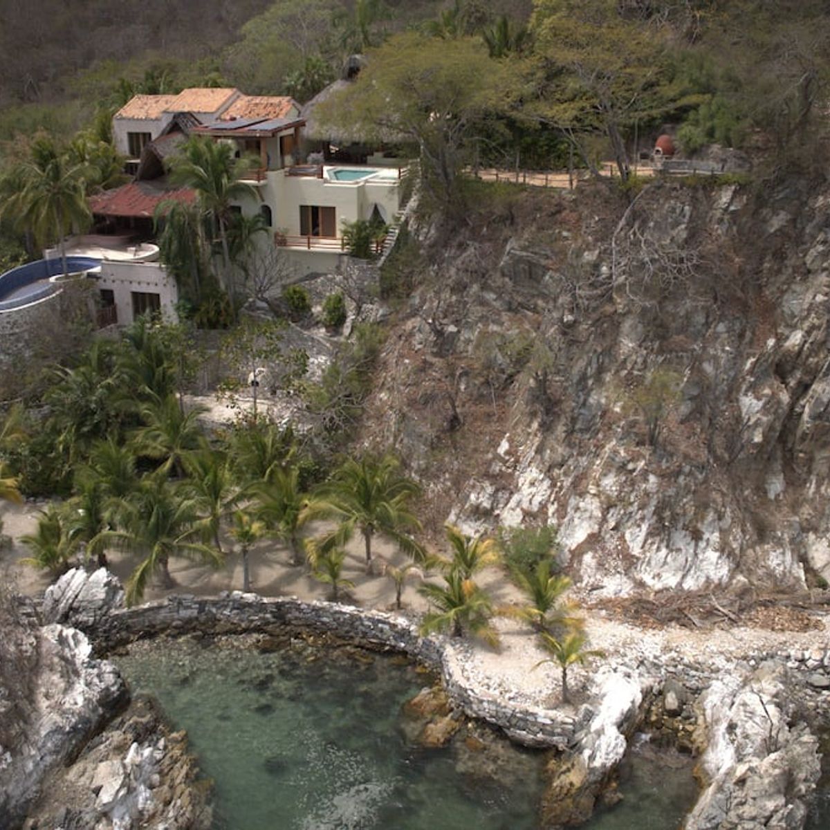 Villa Luna Kuku is a privileged, one-of-a-kind retreat located on the shores of beautiful Zihuatanejo Bay. Perched on a dramatic cliffside, this 4-bedroom villa for up to 12 guests offers the rare luxury of its own private beach and secluded bay, blending total privacy with barefoot elegance.