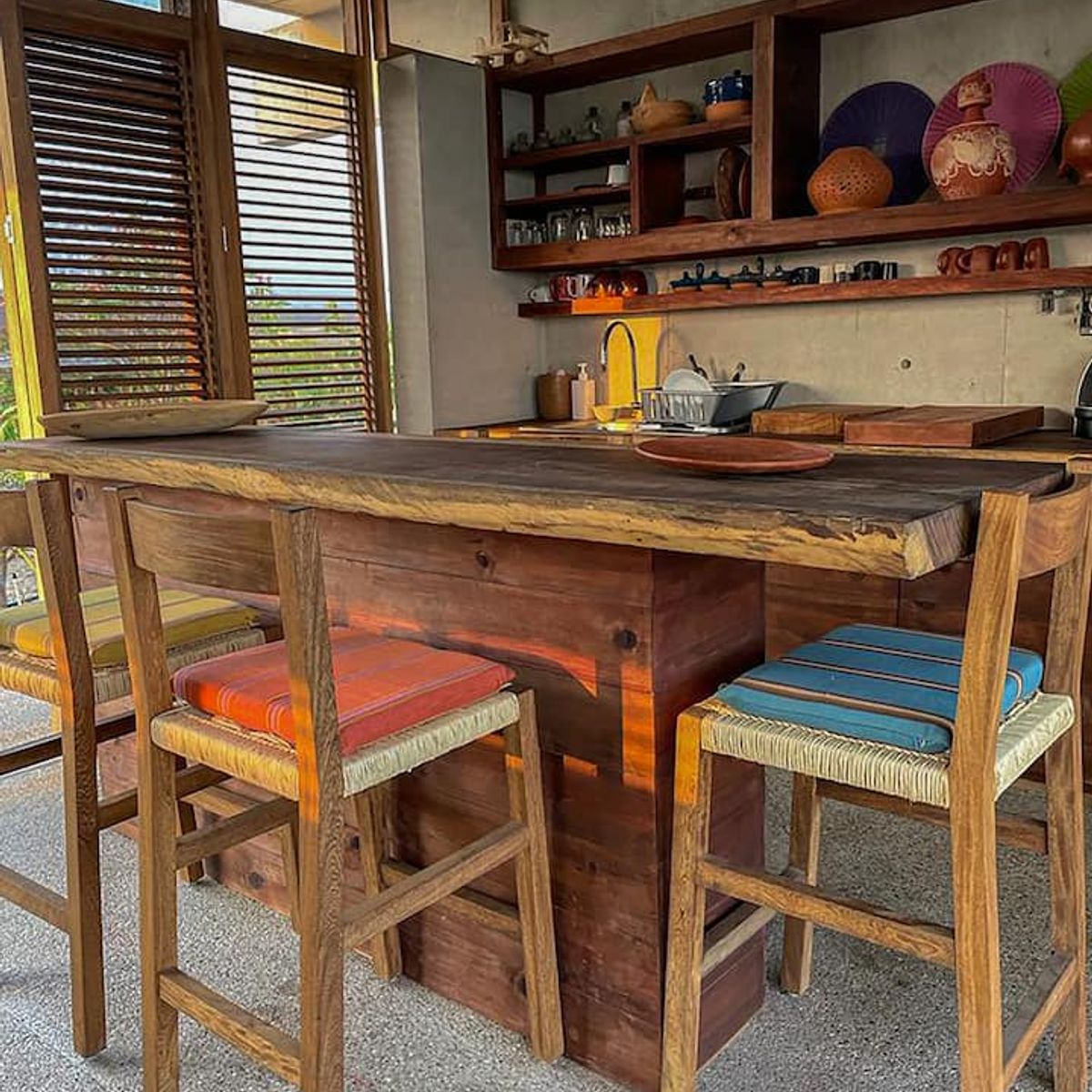 The villa is located in the exclusive beach-front neighborhood of Punta Pajaros, 30 minutes from Puerto Escondido Airport (PXM) and 45 minutes from downtown Puerto Escondido. The neighborhood—if you could call it that, considering its simplicity and isolation—features three small restaurants (that close early), a mezcal bar, and a handful of art galleries.