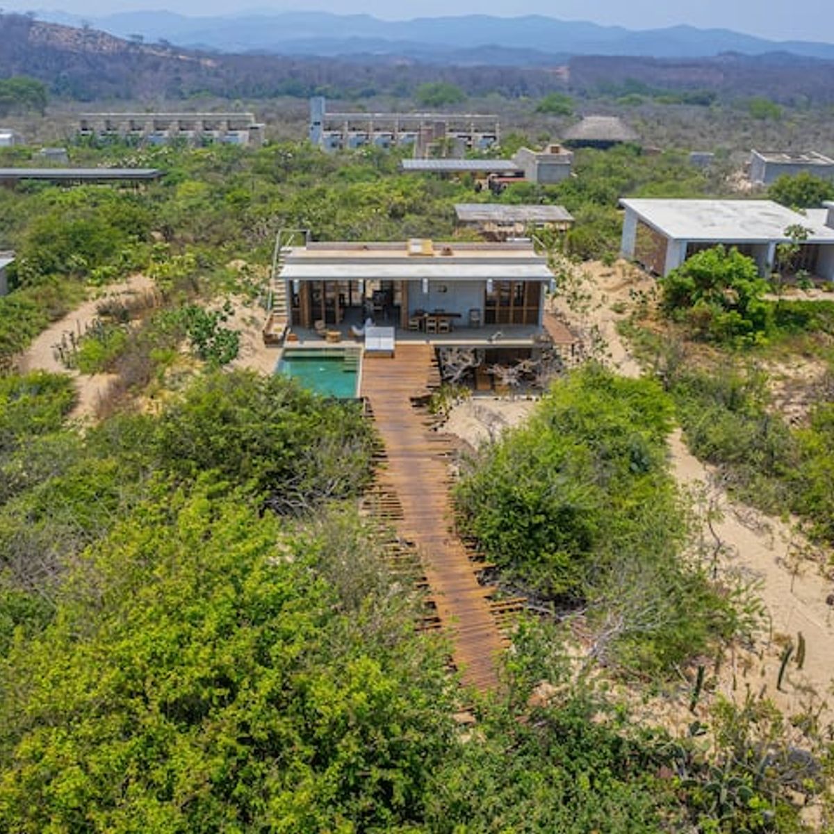 Villa Maria Matilda emerge out of the vegetation on the edge of the Pacific Ocean, seemingly stranded between sand and jungle. Sleeping up to 10 people across two spaces separated by a plant-lined walkway, this villas is an idyllic escape for groups of friends or big families.