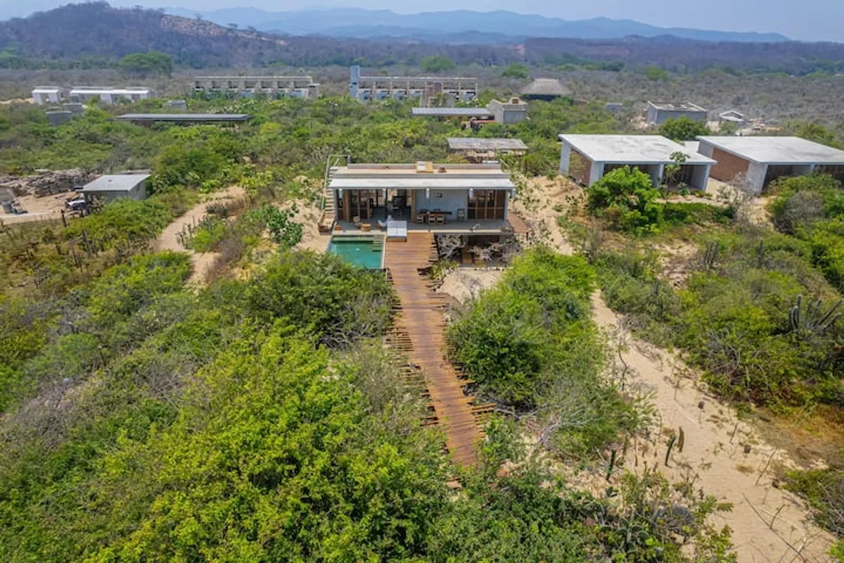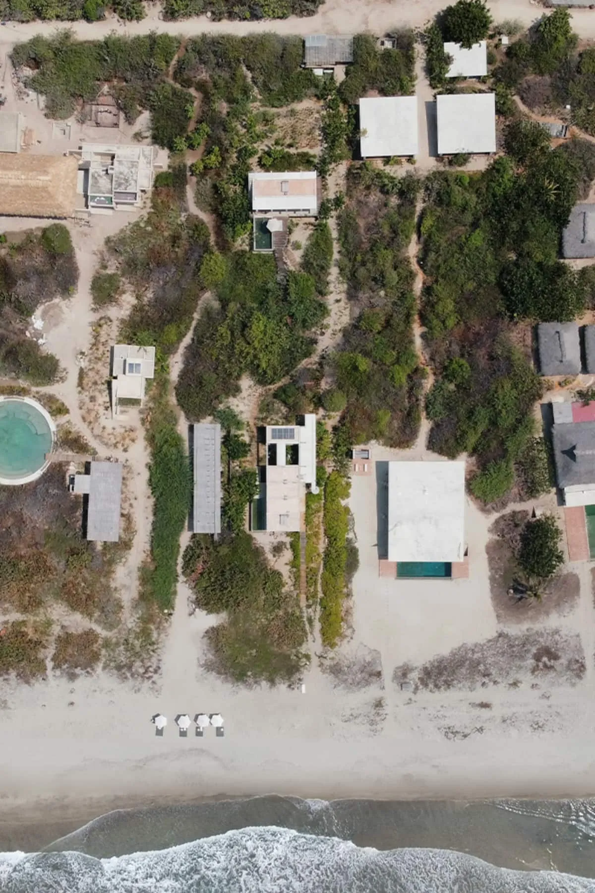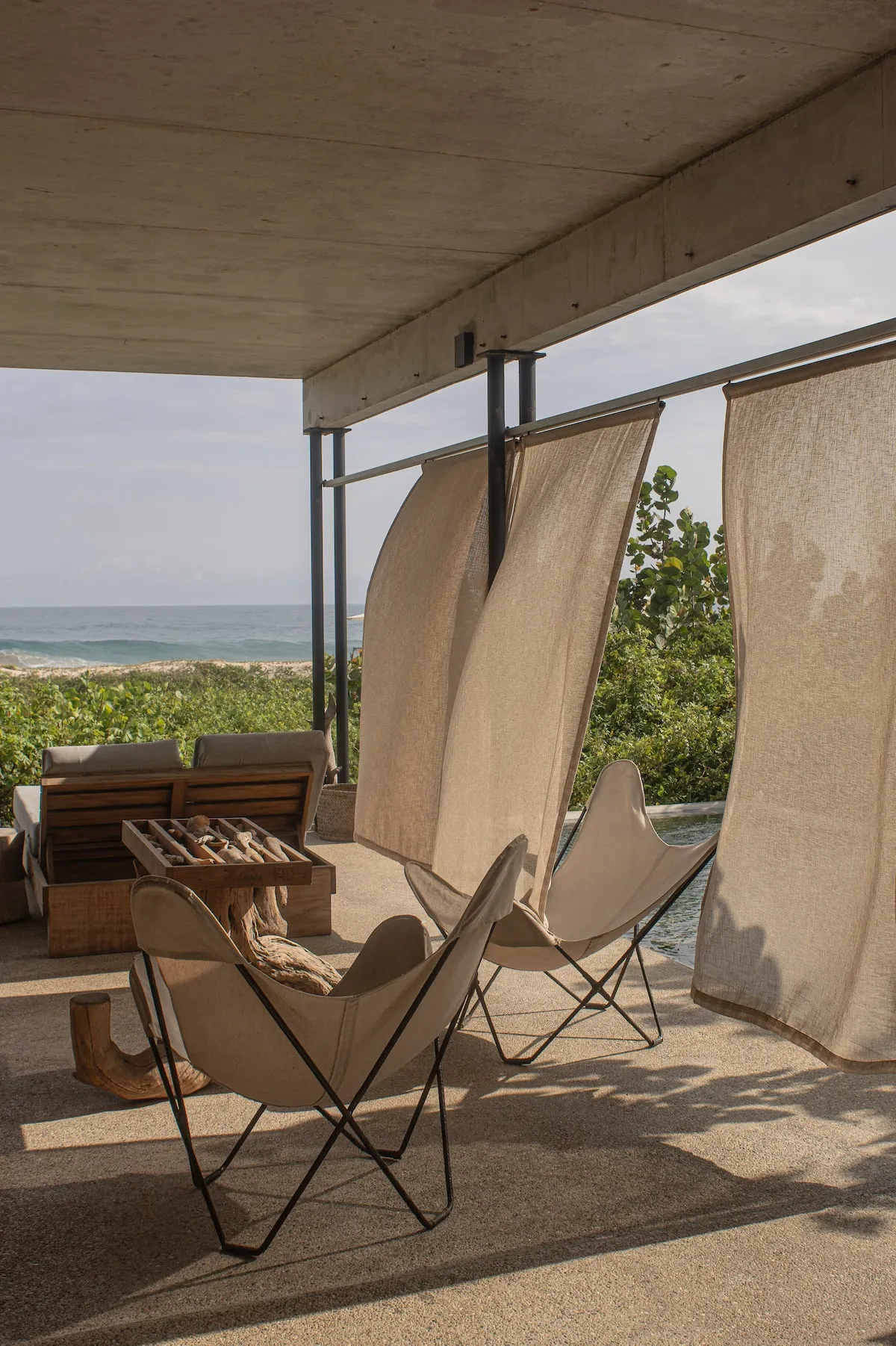 The villa is located in the exclusive beach-front neighborhood of Punta Pajaros, 30 minutes from Puerto Escondido Airport (PXM) and 45 minutes from downtown Puerto Escondido. The neighborhood—if you could call it that, considering its simplicity and isolation—features three small restaurants (that close early), a mezcal bar, and a handful of art galleries.