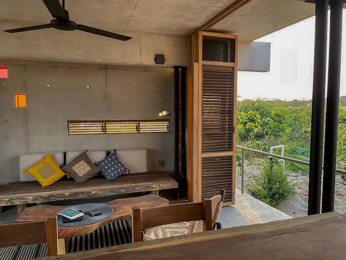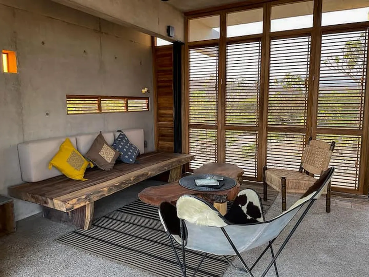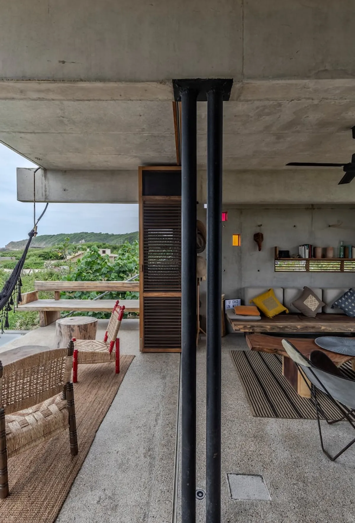 The villa is located in the exclusive beach-front neighborhood of Punta Pajaros, 30 minutes from Puerto Escondido Airport (PXM) and 45 minutes from downtown Puerto Escondido. The neighborhood—if you could call it that, considering its simplicity and isolation—features three small restaurants (that close early), a mezcal bar, and a handful of art galleries.
