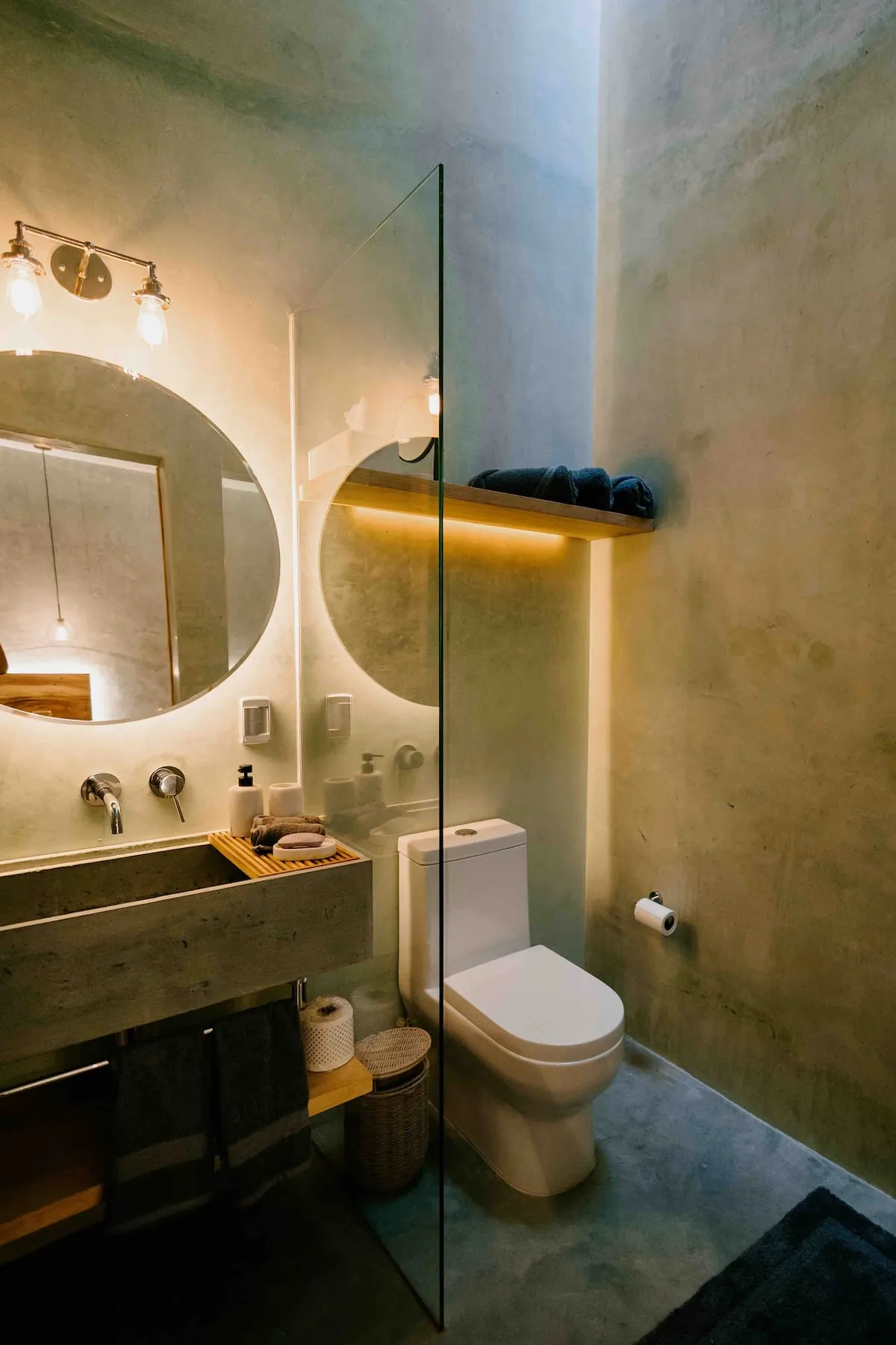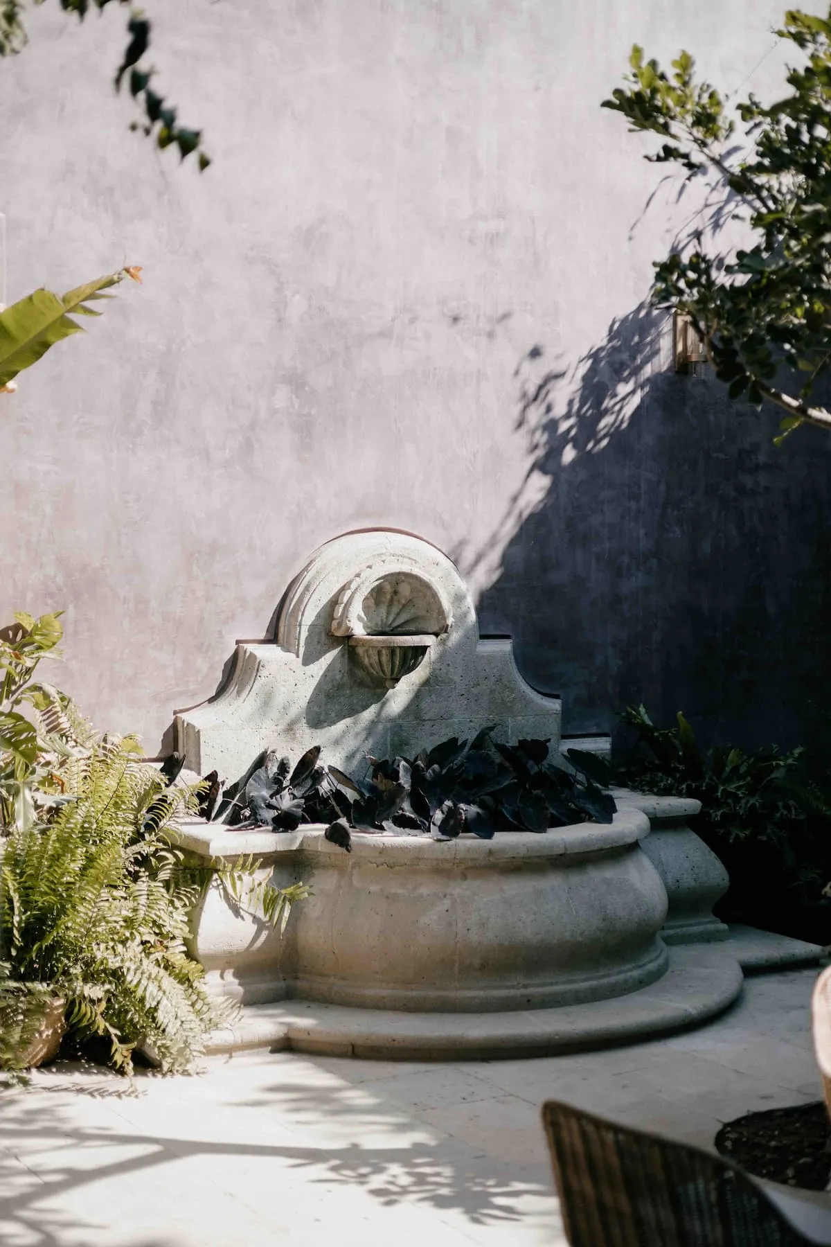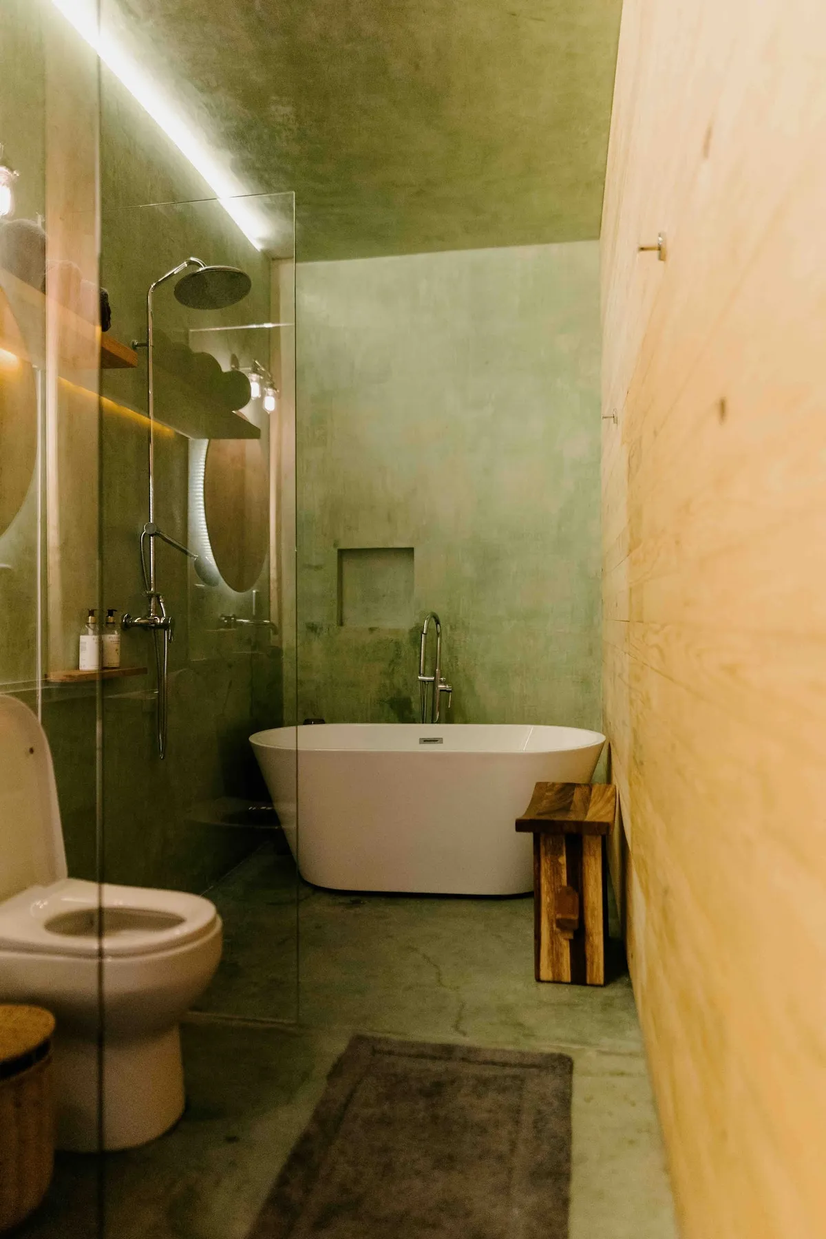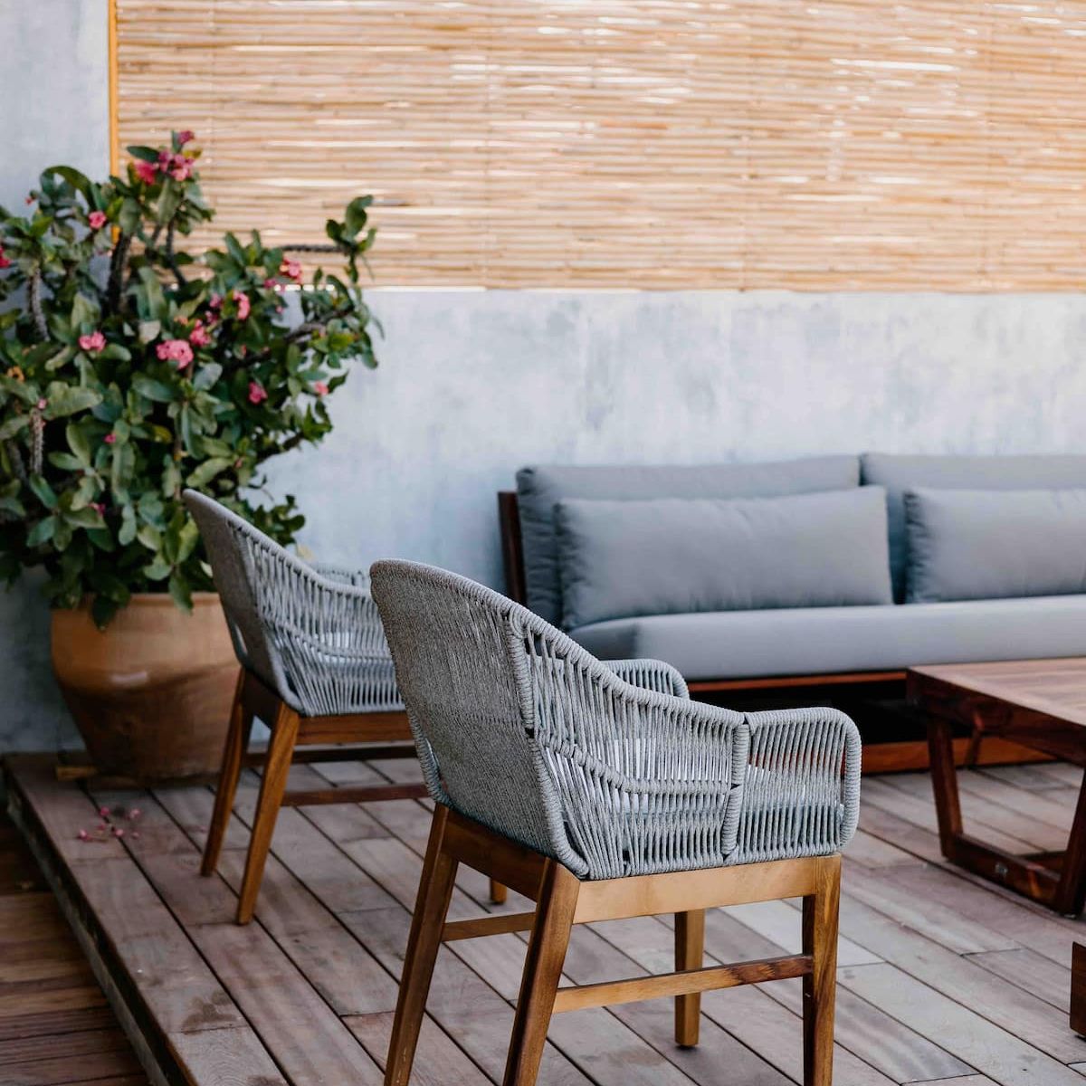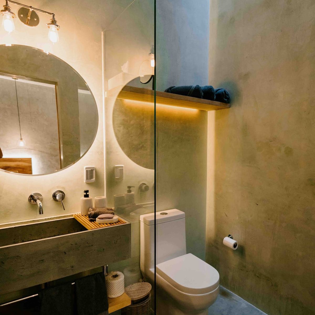 Finishes include lime-polished walls in local green tones characteristic of cantera stone, with the central courtyard highlighted in crimson. Vegetation is integrated throughout the design—patios, terraces, and walkways—to provide shade, freshness, and tranquility.