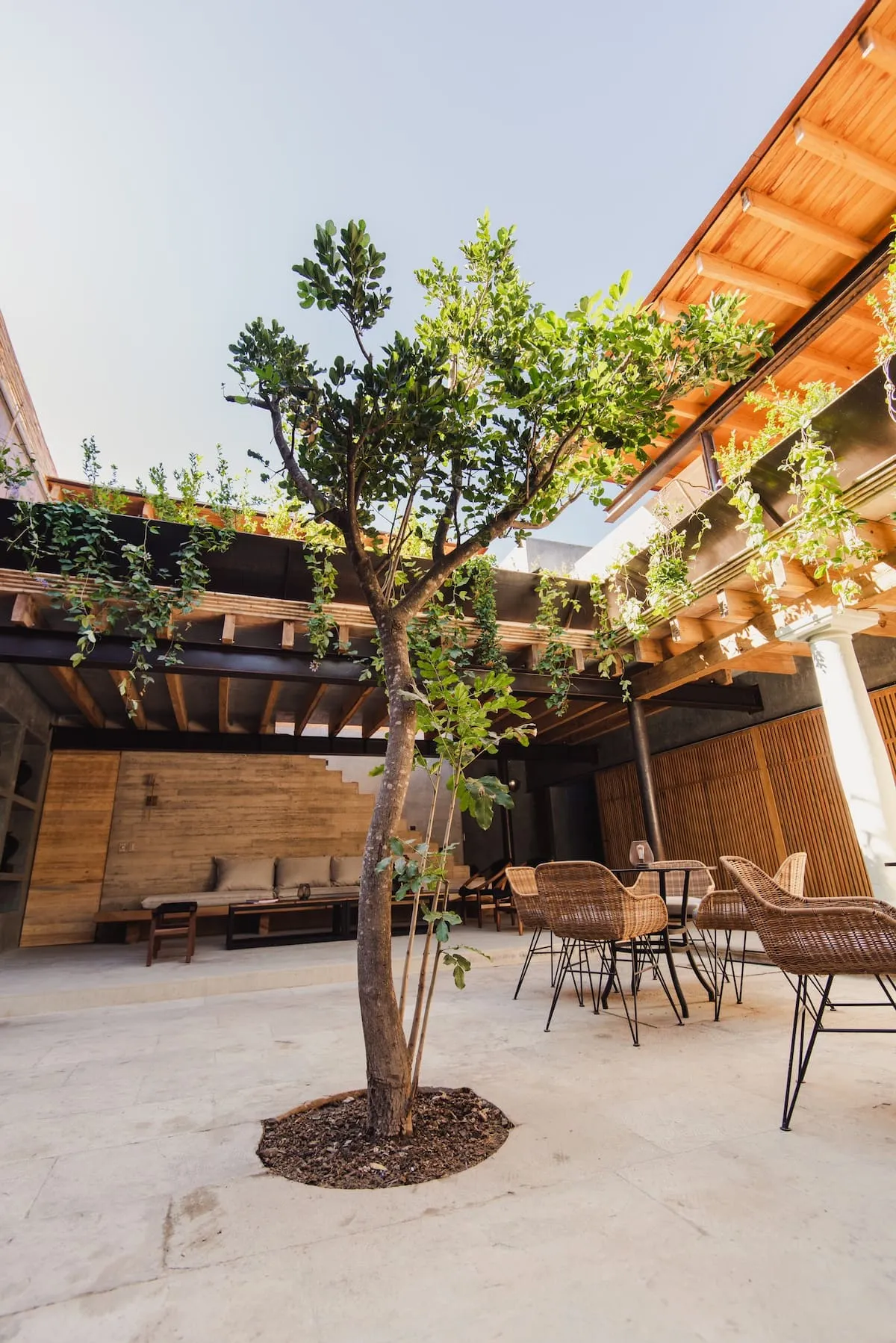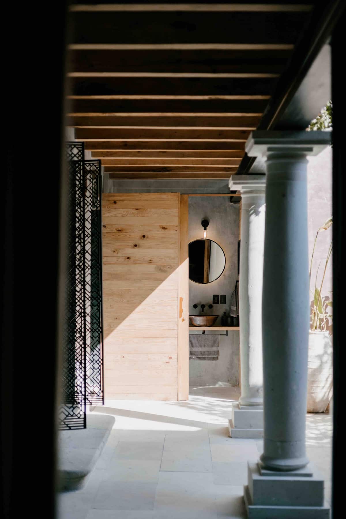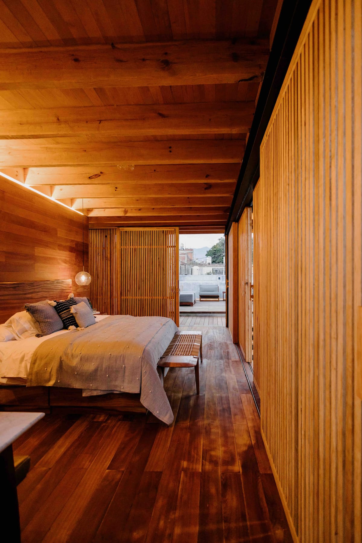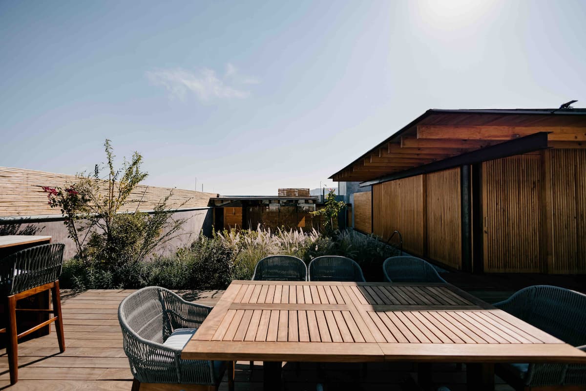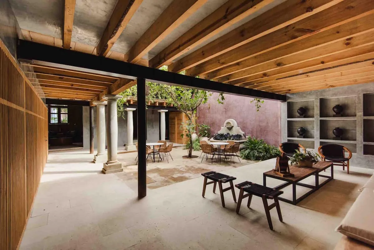 This stunning home is a Mexican renovation of an 1980s house in the historic center of Oaxaca City. The project, led by the Topometasis studio (Iván Ramírez and Fabiola González), focused on creating open spaces that interact with the surroundings, using wooden latticework to manage light, shadow, and privacy.