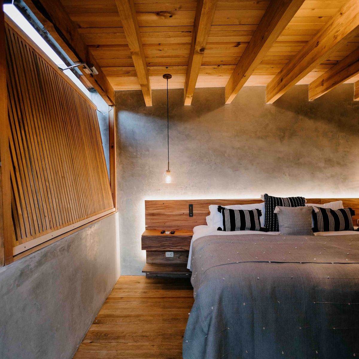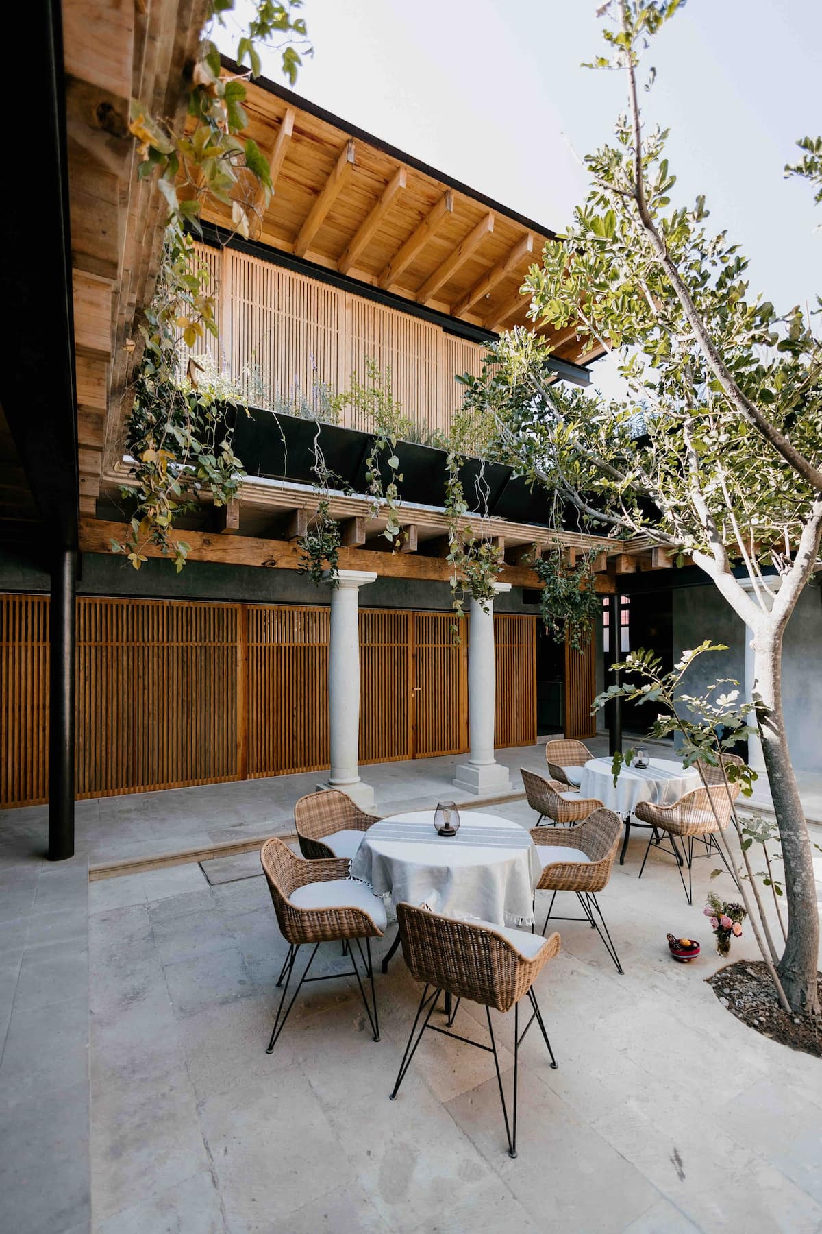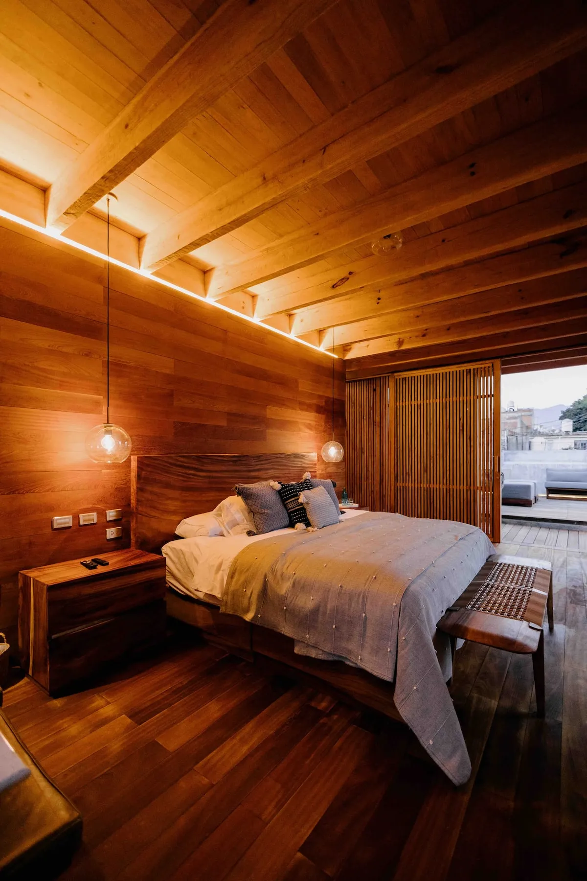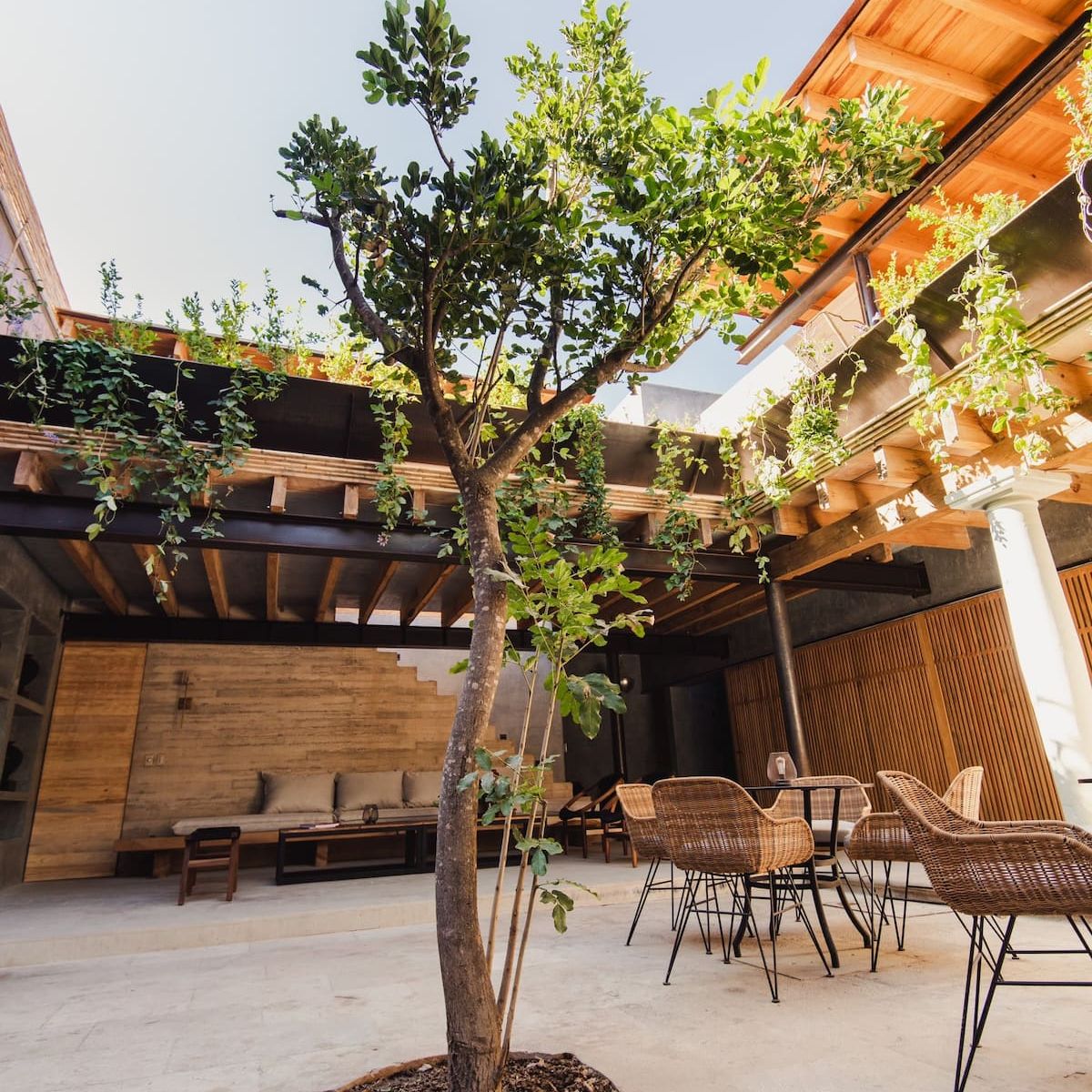 This stunning home is a Mexican renovation of an 1980s house in the historic center of Oaxaca City. The project, led by the Topometasis studio (Iván Ramírez and Fabiola González), focused on creating open spaces that interact with the surroundings, using wooden latticework to manage light, shadow, and privacy.