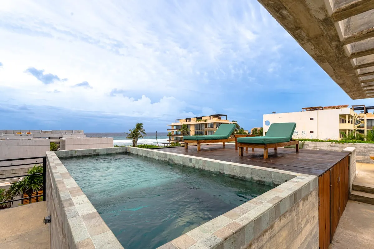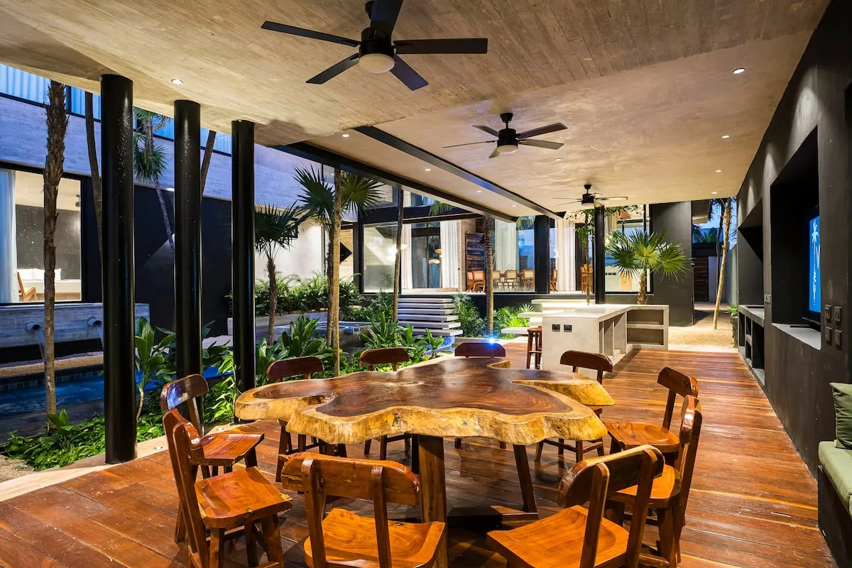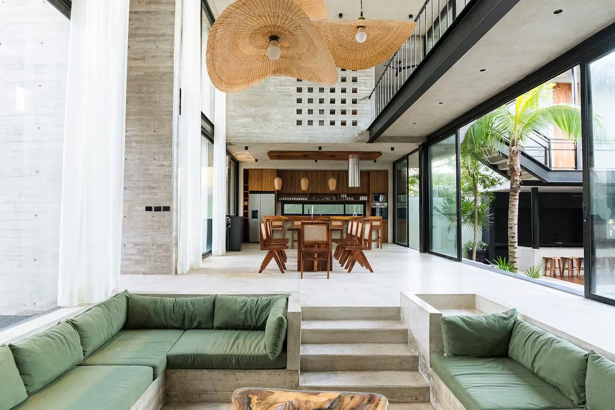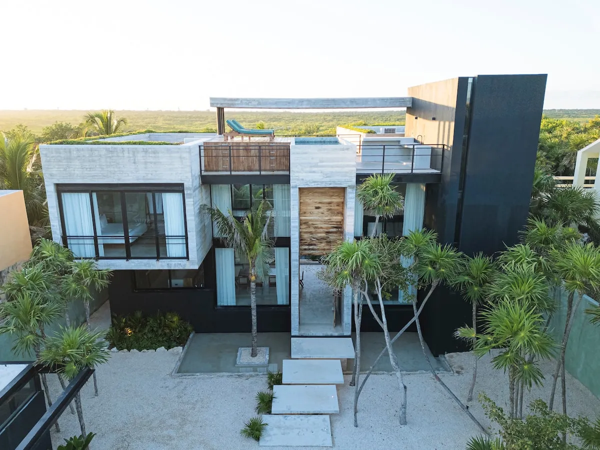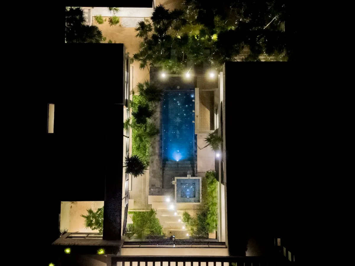 Ideal for families or groups, the villa features a rooftop with panoramic views, a yoga space, and a fully equipped kitchen. Chef service is included (ingredients not included).