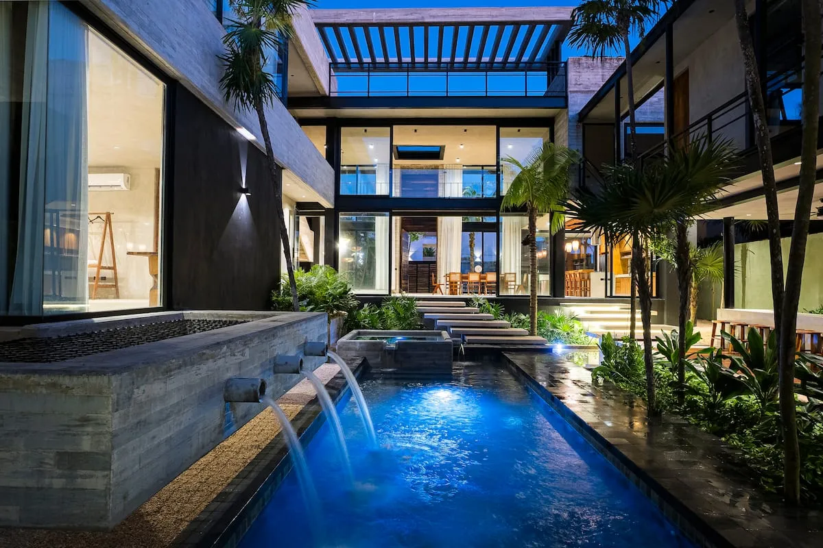 Villa Vihara is a 792 m² three-level retreat just 20 meters from the sea. Designed for privacy and comfort, it offers 5 spacious bedrooms, 7 bathrooms, two pools, a jacuzzi, and concierge service.