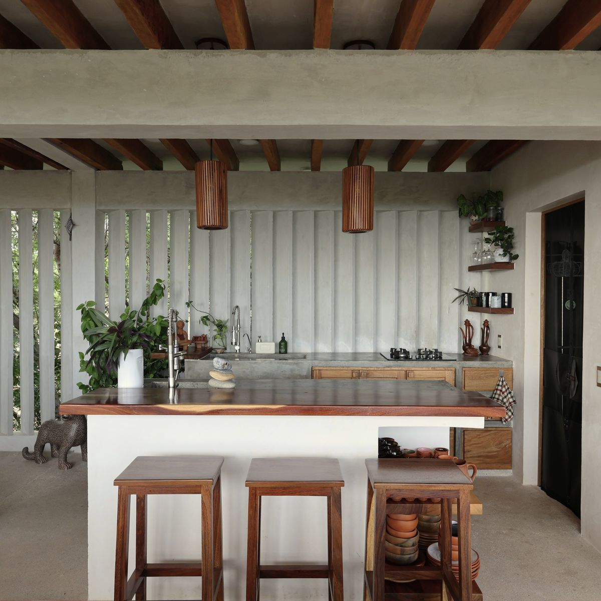 Every home has its own unique character and personality, combining modern, natural, and handcrafted elements that blend harmoniously with its surroundings, creating a distinctive ensemble full of charm and character. The three villas share a large saltwater pool with infinite ocean views and an outdoor kitchen, perfect for enjoying meals, surrounded by trees and sea breeze.