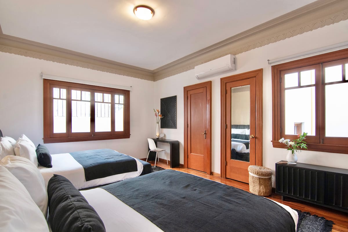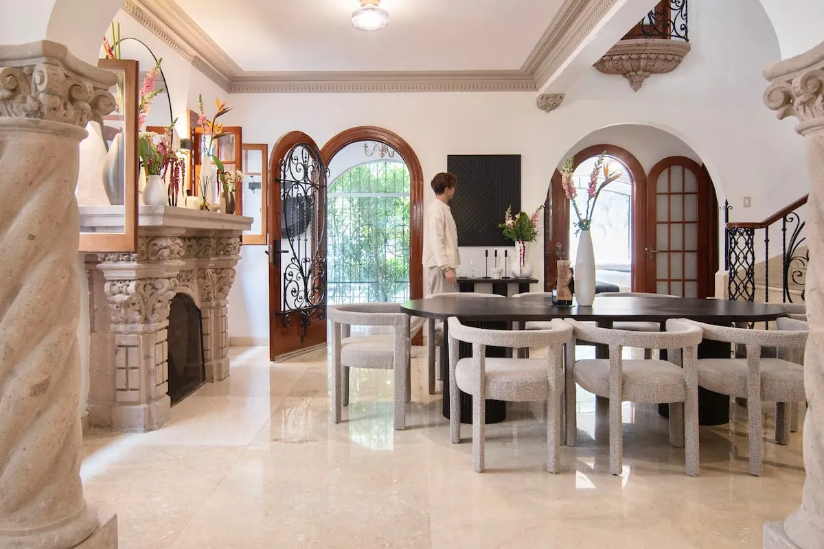 This classic Condesa home stands out for its space, layout, and architectural charm. Original stained-glass windows and cinematic staircases add to its unique character, while the distribution of bedrooms across multiple levels ensures comfort and privacy for groups.