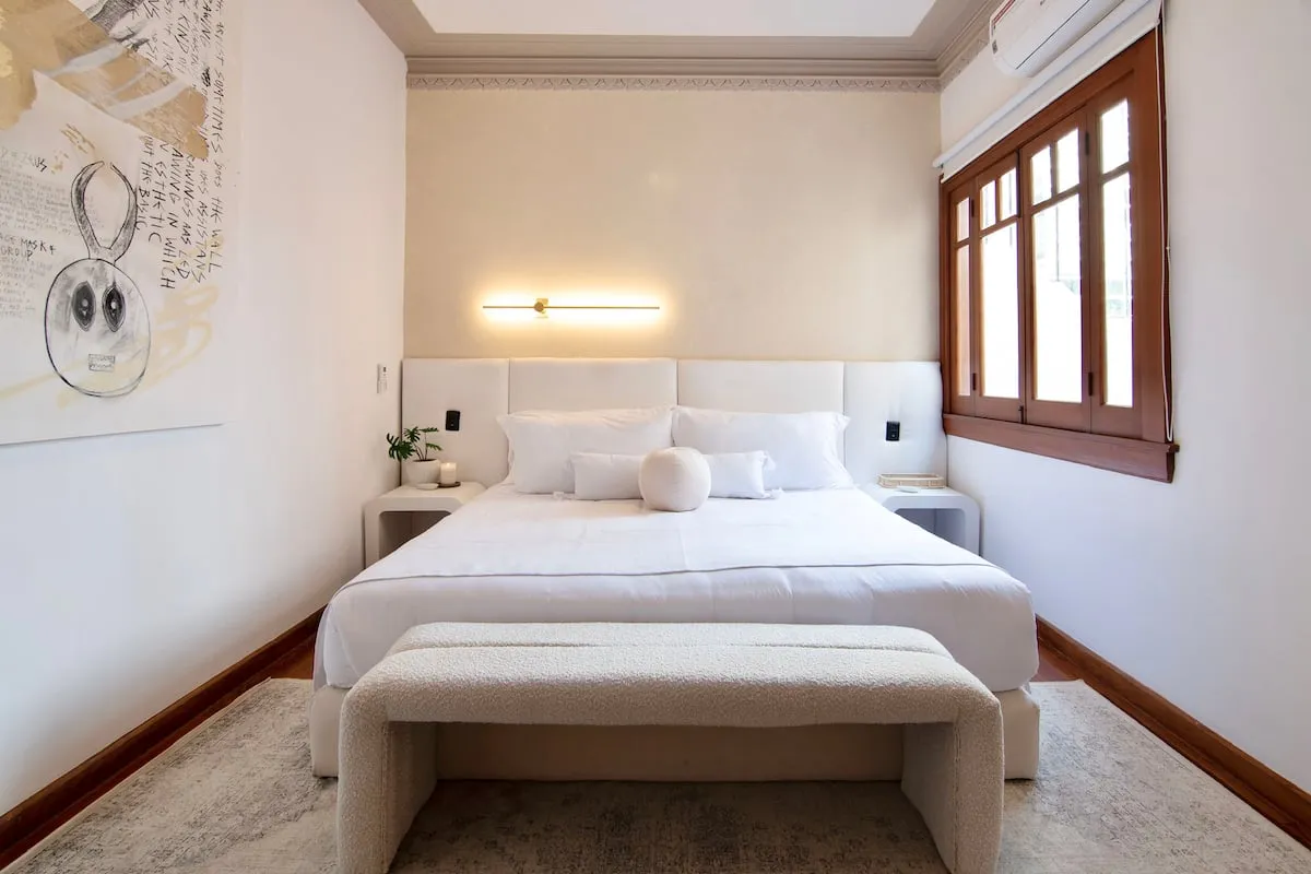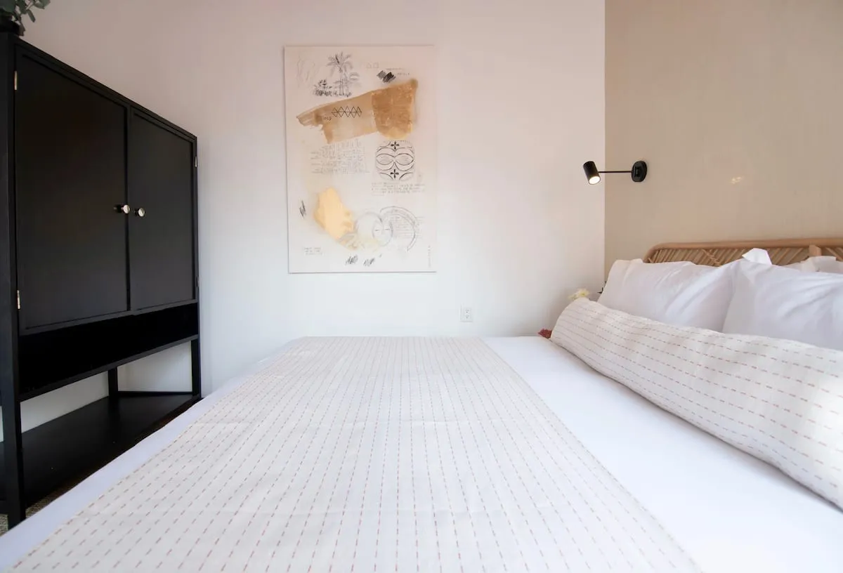 Bathed in natural light, the house features a warm and inviting atmosphere throughout, complemented by thoughtfully curated interiors, premium linens, and spa-style bathroom amenities. A highlight of the property is its expansive private rooftop, along with a charming balcony and multiple indoor and outdoor spaces designed for relaxation.