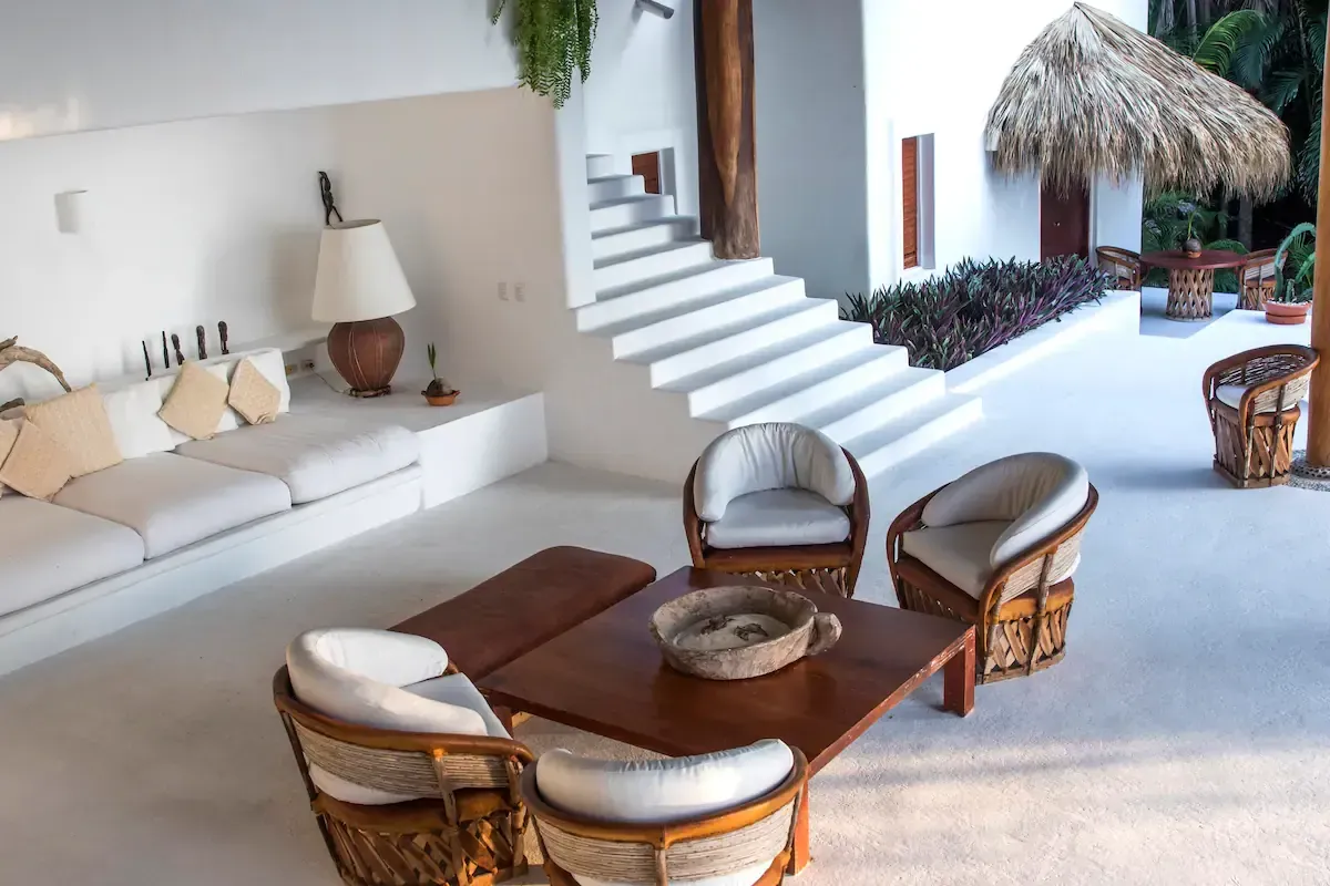 The residence was designed by the legendary Mexican architect Diego Villaseñor, an Architectural Digest "Top 100" talent, and has been celebrated in prestigious international publications including the book "Mexico: Casas del Pacífico." The villa’s open-concept floor plan features a grand living and dining area, a serene lounge, and a sprawling terrace that leads to a private sand garden and infinity-edge pool, all meticulously positioned to overlook the sea. The layout includes a magnificent primary suite, three additional guest bedrooms, and a fully equipped chef's kitchen, providing a sophisticated retreat with complete privacy.
