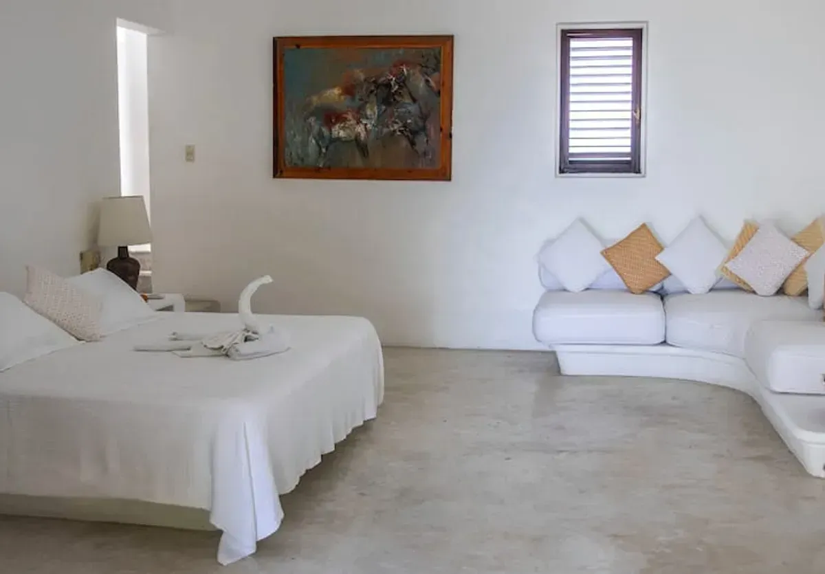 Situated behind a secure private entrance, the property offers a level of seclusion rarely found in such a prime location. Residents enjoy effortless access to the pristine beach at the neighboring Las Brisas Hotel, combining the intimacy of a private estate with the convenience of world-class amenities. This is a unique chance to acquire a piece of Mexican architectural history that perfectly balances high-end design with the tranquility of its natural surroundings.