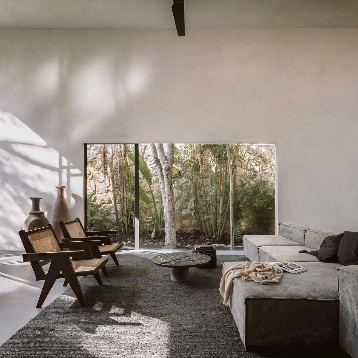 A short distance from the beach and the crystalline cenotes, the stunning homes sits discretely in the jungle, merging indoor and outdoor into one generous, peaceful space.